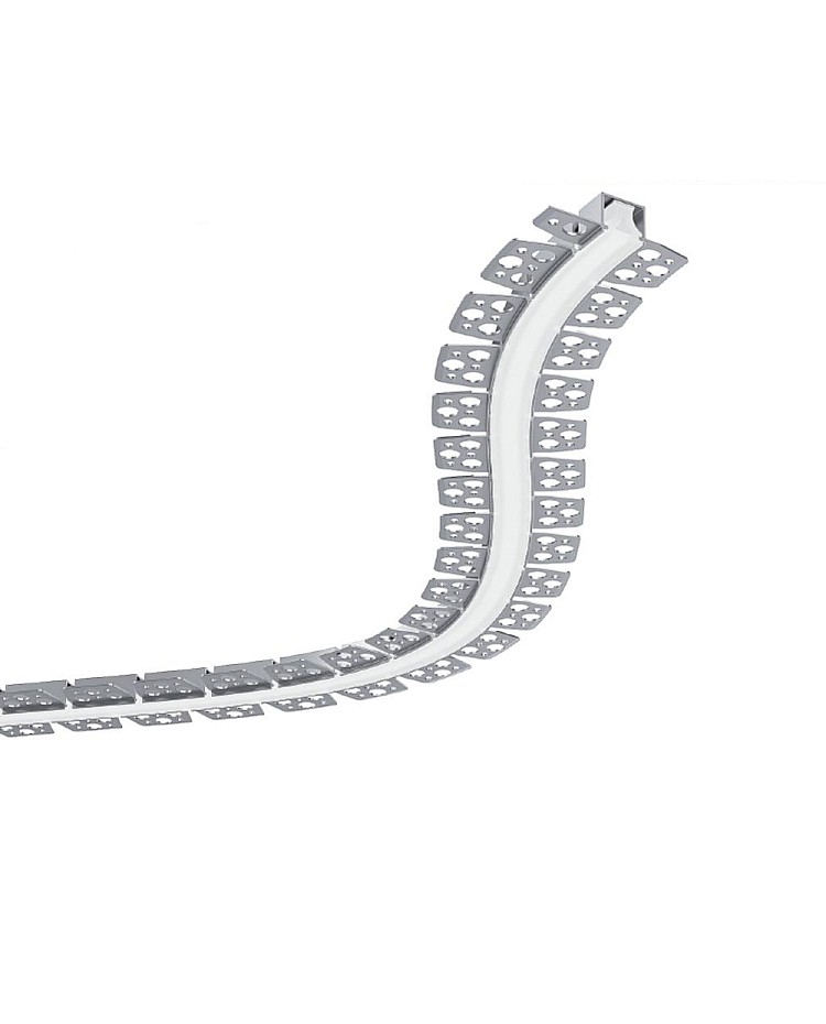 The plasterboard curved LED profiles are designed for seamless integration into 1/2" drywall for a clean, trimless finish for modern architectural spaces. The bendable aluminum construction allows them to be shaped or bent for creative interior lighting designs in ceilings, walls, and other areas.