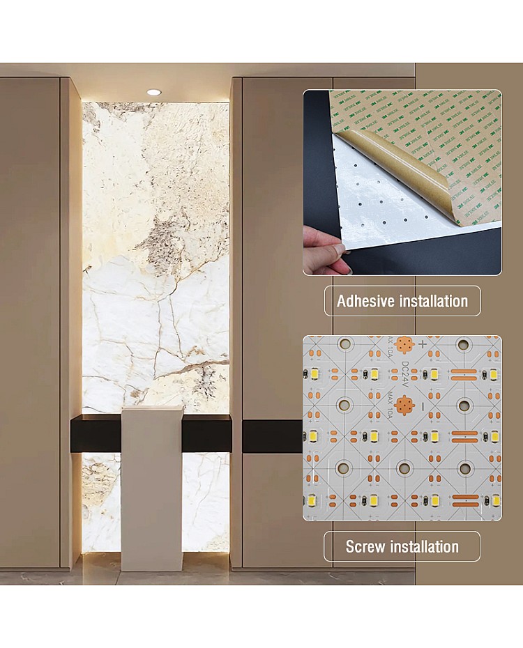 The 10-meter-long rectangle LED backlight sheets are an excellent option for large backlighting projects. They are engineered for seamless architectural and commercial lighting. You can use them to illuminate large surfaces with clean, uniform brightness. The long, ultra-thin, flexible backlight panels are designed for projects that require long, continuous illumination, making them ideal for signage, lightboxes, countertops, and home decorative backlit panels. The white light sheets are bendable, cuttable, and connectable. It can be bent and conformed to curves, corners, and uneven surfaces. A strong self-adhesive tape backing and screw holes for quick, easy installation. The minimum cutting unit is per LED. They are clearly marked with cut lines, allowing you to trim to the exact length you need safely. They use high-quality 2835 SMD LEDs as the light source, with 528 LEDs per meter. The high-density LED sheets deliver vibrant, evenly distributed light. Unlike the 12V products, the 24V design minimizes voltage drop over long distances. This means you get brighter, more consistent light at the end of a 10-meter run, with less power loss and better overall performance. To provide full power to the whole 10-meter-long flexible light sheet, we will recommend connecting to a Meanwell LRS-600-24 power supply. If you want to dim, please add a MiBoxer high-current lighting dimmer.