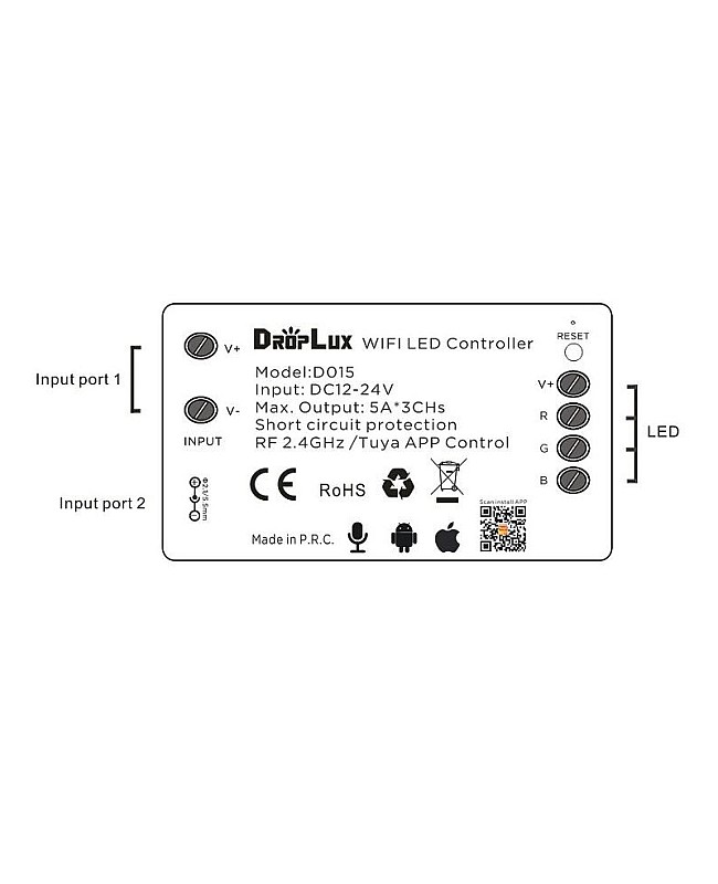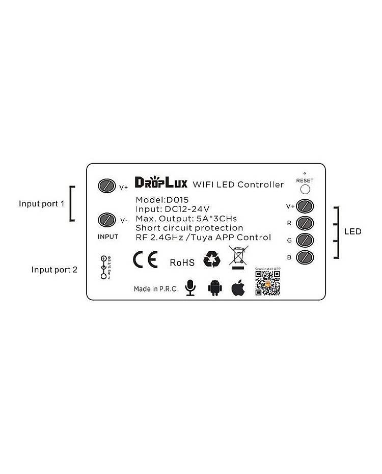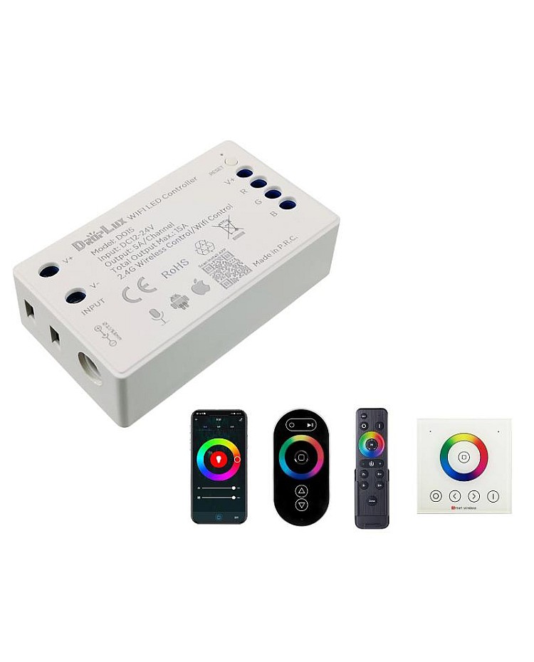 The WiFi RGB LED controllers are designed to control your RGB strip lights in multiple ways. They can be controlled by smart voice speakers via voice commands via Amazon Alexa, Google Assistant, Yandex Alice, etc., to turn the lighting on/off and adjust it remotely. You can also control them with the included remote control or an APP. The LED WiFi controller operates on 12V-24V DC, features a 3-channel design, and delivers up to 5A per channel. With the memory function, each time the power is turned on, it retains the mode which stops last turned off. There are three types of RF remote control available: RFBK-RGB-2.4G LED Remote is included, you can set the mode to RGB, and it works with the RGB WiFi LED controller. Can use the LED remote control to set 4 groups, each group can add many LED controllers, and you can control them synchronously. You can touch the color ring to adjust the static color steplessly, using 64 colors. You can also use it to adjust the brightness of static colors or the speed of dynamic modes. You can scan the QR code on the controller to download the TUYA APP, long-pressing the "Reset" button on the controller and hold for 5 seconds until the loading LEDs flash to start the connection with Tuya APP to achieve the intelligent control like group control, sense control, timer control, music control and so on. the WiFi RGB controller will transmit the control signals from the remote control and self-inspection the work status for each other, multiple receivers can wireless-sync-work completely when being paired to the same one remote control, not only static mode but also dynamic mode. To achieve a wired-like operation experience.