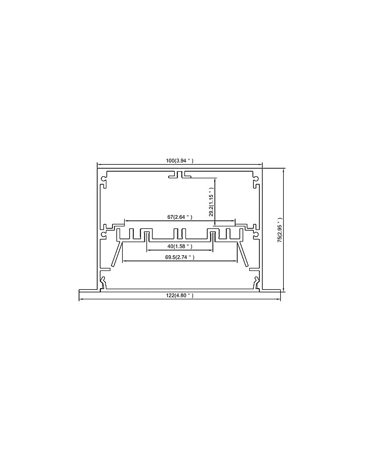 The 4-inch wide recessed LED lighting channels are a high-capacity linear lighting profile designed for premium architectural, commercial, and residential applications. They come with necessary accessories and allow for easy recessing into the ceiling. The inner width is 69.5 mm, allowing a maximum width of 68.5 mm for strip lights. The wide LED housing allows for multiple high-power SMD strip lights or LED modules, producing bright, uniform light suitable for large areas. The aluminum channels can work as heat sinks for excellent heat dissipation, ensuring the long lifespan of LEDs. The PC frosted opal diffusers deliver smooth, dot-free illumination while reducing glare, making it ideal for spaces that require both functionality and aesthetics. There are L, T, X, and IL connectors that are sold separately, which enable seamless continuous runs or the creation of different lighting layouts and patterns. Its robust design makes it a perfect choice for offices, hotels, retail stores, lobbies, etc.