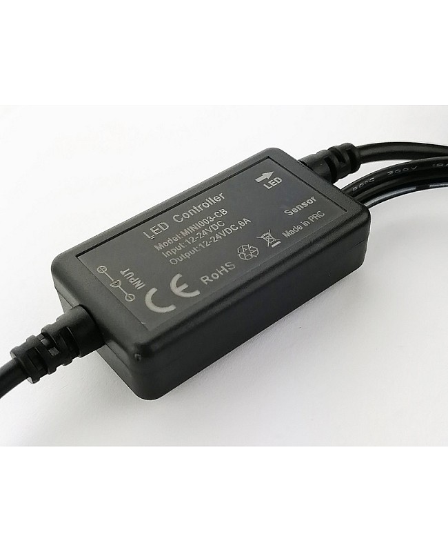 The 12V-24V mini LED dimmer with sensor adopts the advanced PWM(Pulse Width Modulation) digital control technology for controlling constant voltage single color LED lights in the cabinet or furniture application. The mini LED dimmers come with two sensors, which you can order separately. The A Model will automatically switch on or off the light when people close the door to block the ITR sensor or open the door to release the blocking. The B Model will switch on or off the light by operating people's hands going through the ITR sensor without touching. The LED mini dimmer has a stable sensitivity feature, an ITR sensor, and soft light up and down.