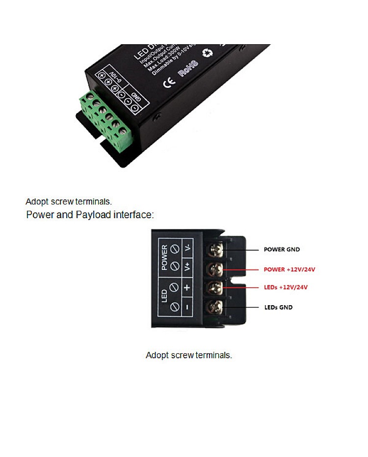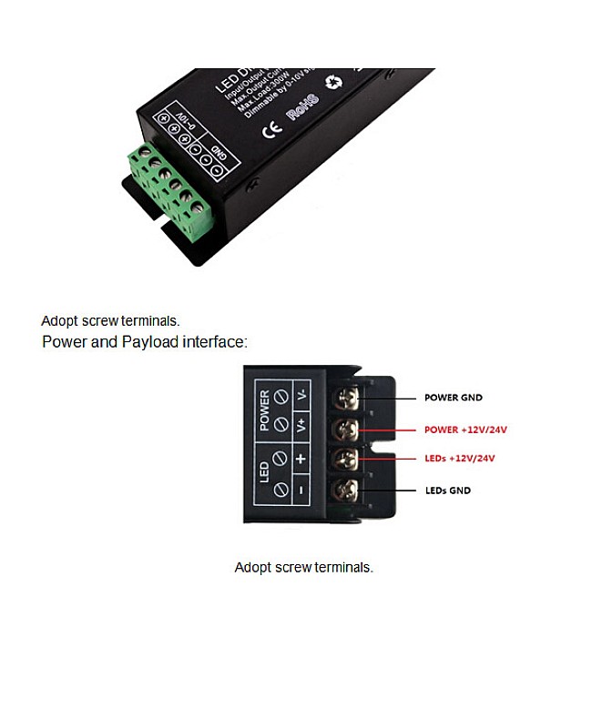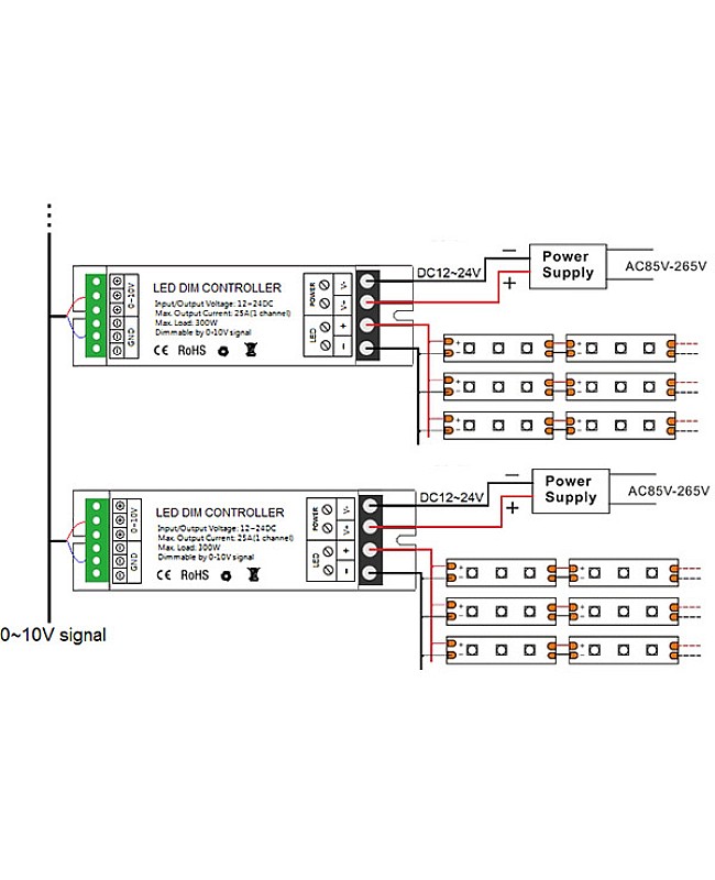 The 12V LED dimmer controller operates between DC 12V and DC 24V, features an advanced microcontroller, and can receive a 0-10V analog control signal widely used internationally. It will change the signal into the PWM control signal to actuate the LED lamp. Dimming ranges from 0% to 100%, providing a stable and soft effect. We recommend using our LED amplifier to synchronize all units. Recommend works with the knob wall panel LED dimmer to adjust the brightness.