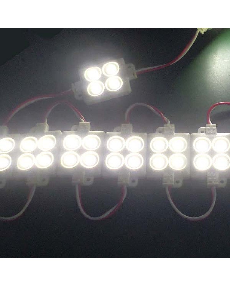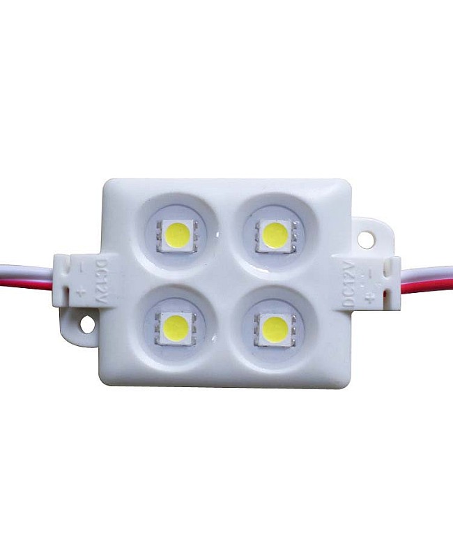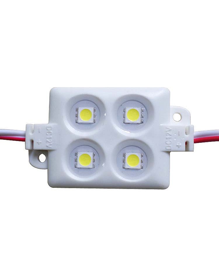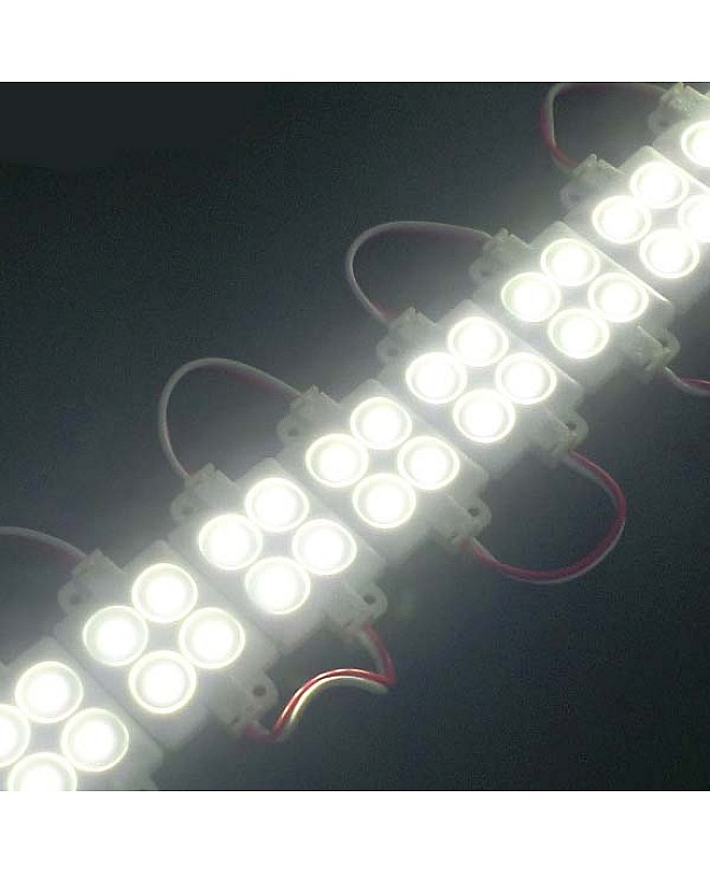 The LED module 5050 has a waterproof injection design, and the waterproof level can reach IP65. You can use the 5050 LED modules for indoor or outdoor LED projects. The LED modules use 4PCS high-quality 5050 SMD LEDs as the light source, the SMD LEDs mounted on the aluminum board for better heat dissipation, with fireproof ABS material shell and the surface with epoxy sealed, working in DC12V, easy to connect to the LED driver to light up or connect the LED dimmer controller to adjust the brightness. The back of the 5050 modules have double-sided adhesive tape, the end of both sides with screw holes, easy to install and use, take off the protector on the tape and stick on the place you want to install or use the crews to fix them. You can use the 5050 LED modules to design your LED signs and channel letters. 20PCS waterproof LED modules per string, cuttable and reconnectable, you can cut any quantity and reconnect them for your projects. 3 years warranty for a free replacement.