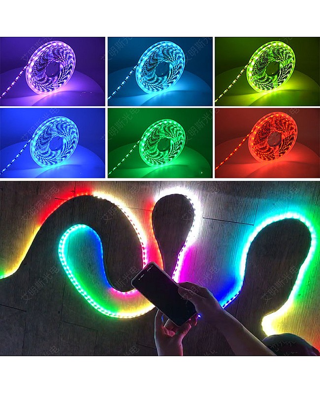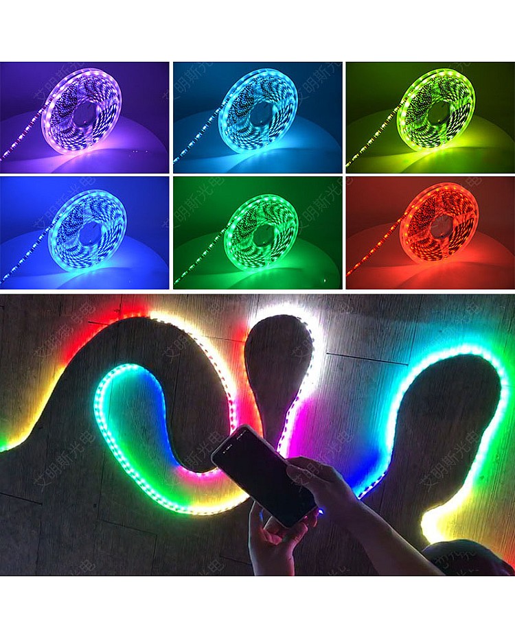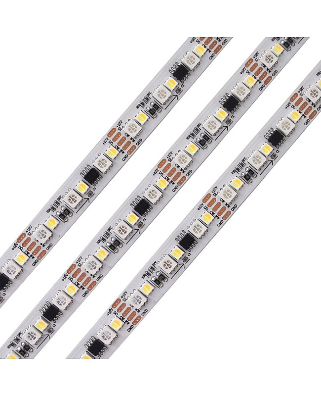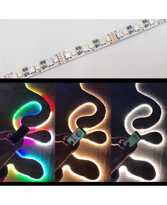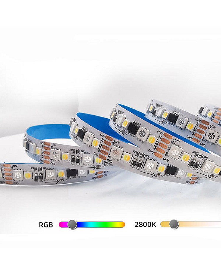 Check the RGB CCT Strips, which use the 5050 RGB LEDs and 3838 WW and CW 2 In 1 SMD LEDs as the light source, individually addressable with a single IC chip to achieve the effects of running water, horse racing, chasing, gradual change, breathing, etc. at the same the color temperature can be adjustable from 3000K to 6000K. The RGB+CCT LED Strips utilize 60PCS 5050 RGB SMD LEDs and 60PCS WW+CW 2 in 1 3838 SMD LEDs as the light source, with a length of 5 meters per reel. The minimum cuttable length is 5cm. Equipped with double-sided adhesive tape, it is easy to install and use. The IP rating of the RGBCW LED Strips is IP20, indicating non-waterproof status, and is only recommended for indoor use.