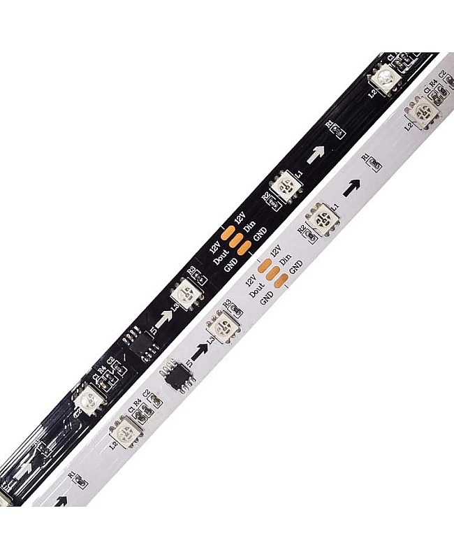Check the Dreamcolor LED Strip Lights with 1903 IC, working in DC12V, need to work with the 12VDC output LED Power Supply, use the high-quality 5050 SMD LEDs as the light source, 60PCS LEDs per meter, the Dream Color LED Strips with 1903 IC, each piece of IC controls 3PCS SMD LEDs, with the Addressable LED Strip Controller, the LED Strip Lights can provide dynamic color-changing, color-chasing, static, white or other color-changing modes. The minimum cuttable length is 3 pieces of SMD LEDs and one piece of IC. You can cut them to the desired size and reconnect them with the 3-pin LED Connectors. there are 4 different IP Rating products available, the IP20 LED 12V Strips non-waterproof for indoor only, IP65, IP67 and IP68 for indoor or outdoor applications.