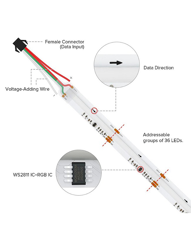 - Model: WS2811 Pixel RGB COB Strip Lights