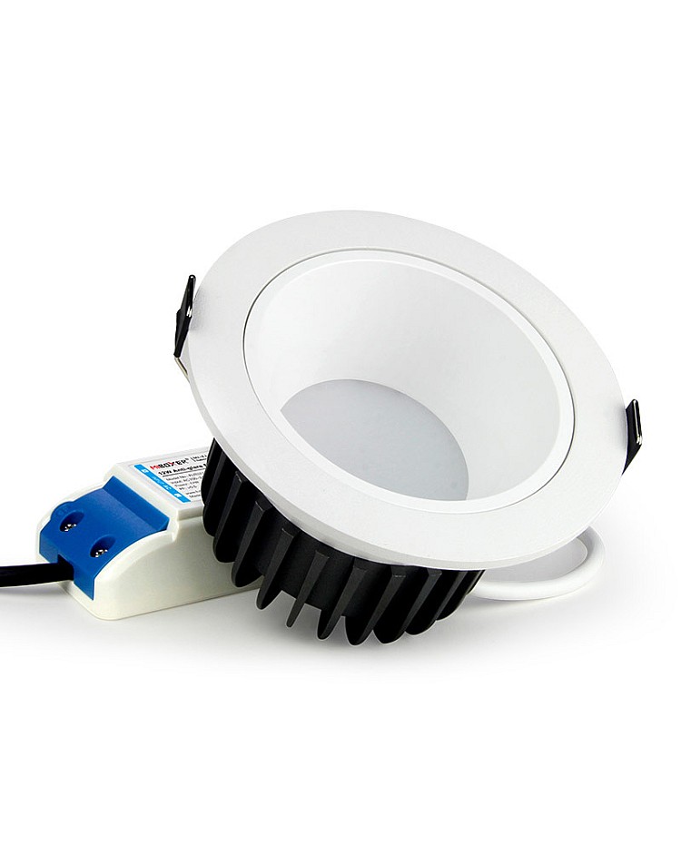 The voice-controllable MiBoxer FUT071 smart downlights are ideal for those looking to add a touch of modernity and sophistication to their homes. It can be controlled by RF remotes, a smartphone APP, and third-party voice commands to set the color or dynamic mode and adjust the color temperature, saturation, brightness, or color-changing speed for various scenes. The downlights have a deeply anti-glare design, and the refraction material prevents glare effectively and offers healthy ambient light. The back of the light is made of high-quality aluminum housing, which provides better heat conduction for fast heat dissipation. Both sides have stainless steel spring clips for easy installation. The LED power supply is included, with stable constant voltage and current output to improve the lifespan. There are 16 million colors and 9 dynamic modes available. The smart down light will receive the signals from the Remote and transmit them to other lights within 30 meters, and all of them will work synchronously. You can use them in offices, hotels, restaurants, homes, etc.