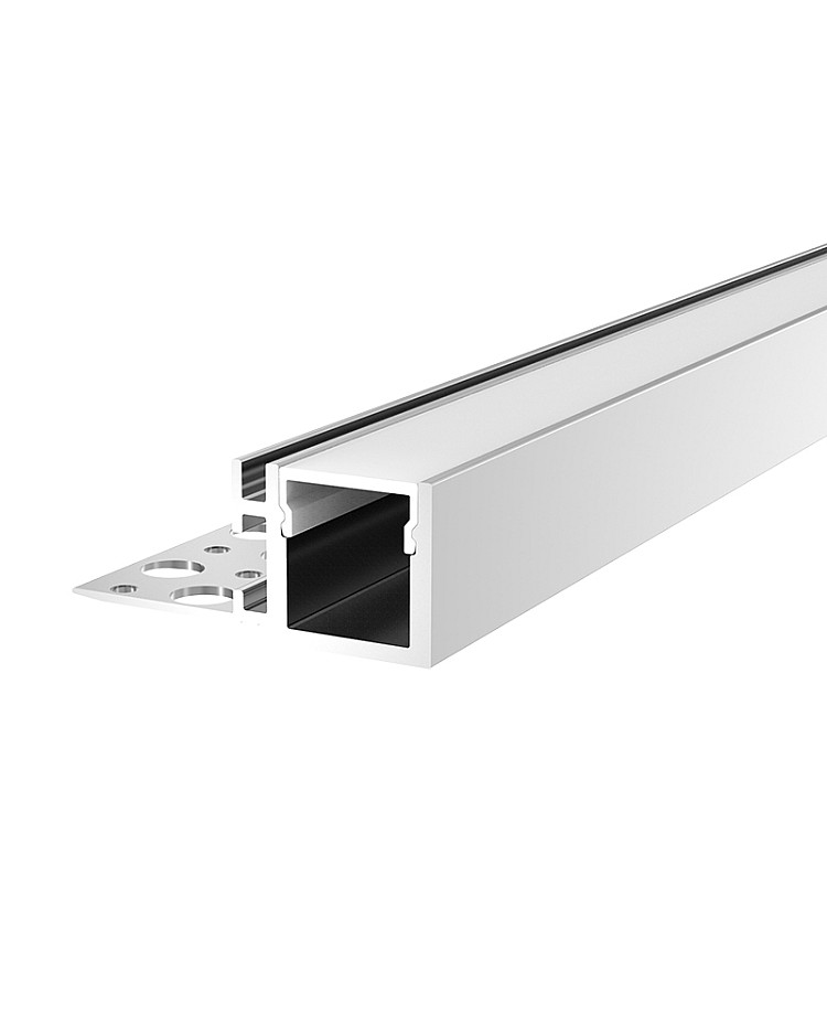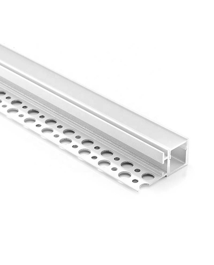 The drywall LED profile light with a single flange is designed for flush mounting with 16 mm (5/8") thickness of plasterboard. They can be installed directly into the edge of the floating ceiling drywall, forming a clean shadow gap or glowing perimeter light line that enhances the architectural depth of the ceiling. They are crafted from 6063-T5 extruded aluminum material with a white surface treatment, providing anti-oxidation properties and a longer lifespan. The standard lengths are 1 m and 2 m; you can cut to any length for your specific applications, and a custom length is also available. The inner width is 13.9 mm, allowing for LED strips with a width of up to 13 mm. The aluminum perimeter light channels serve as a heat sink for improved heat dissipation, thereby extending the lifespan of the LED lights. Only one type of diffuser is available: the PC diffused cover, made of imported-brand material, is anti-yellowing, features perfect light distribution, and diffuses the lighting evenly. End caps with and without wire holes are included. There are 3 types of joiners available: 90°, 90° vertical, and 180°. You can use them for both angled and straight connections in interior design.