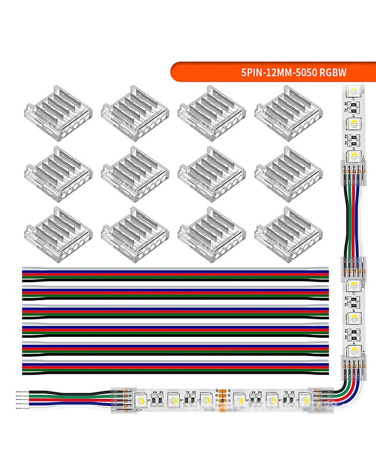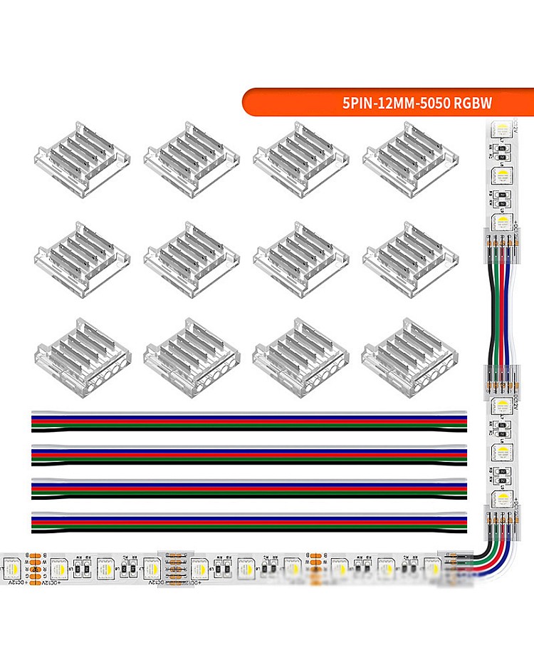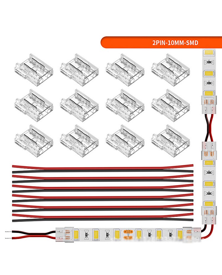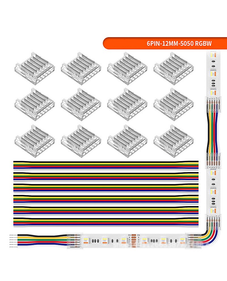 The solderless mini SMD LED strip connectors, there are various width products available, you can choose the 10mm and 12mm for your LED projects, there are various solderless SMD connectors available, 2P, 3P, 4P, 5P and 6P. the 2P connectors for single color LED strips, 3P for CCT LED lights, 4P for RGB and RGBIC LED strips, 5P for RGBW LED tapes and 6P for RGBCW LED rope lights. You can use the knife to cut the LED strips to the desired length from the cutting marks. The 15cm wires are included; you can use the board to wire connectors for corner installation.