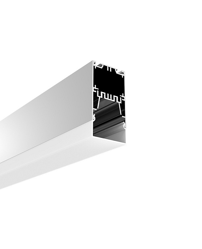 The 2-inch pendant LED strip light channel and diffuser has a 20mm dropped lens for a wide view angle and seamless light output without light dots. It comes with suspension wire kits that allow hanging on the ceiling for interior linear lighting. It can be used as architectural Lighting in homes, offices, restaurants, supermarkets, hotels, etc. The LED diffuser channels are made of 6063-T5 aluminum material with anodized surface treatment, anti-oxidation resistance, and a longer lifespan. There are three colors available: silver, white, and black. The standard lengths are 1M and 2M, and can be cut to any length, and custom lengths are available. Only one type of diffuser is available: the 20mm dropped covers, which are made of imported brand material, anti-yellowing, and soft light output. The inner width is 27.4mm, which allows the max-width of the LED light to be 26mm. You can install rigid LED strips, modules, or flexible LED tapes as the light source. The aluminum channels can be used as heat sinks for better heat dissipation. The 90°, 90° vertical, and 180° connectors are sold separately, and you can use them to reconnect the LED light channels. Metal clips and steel wires are included.