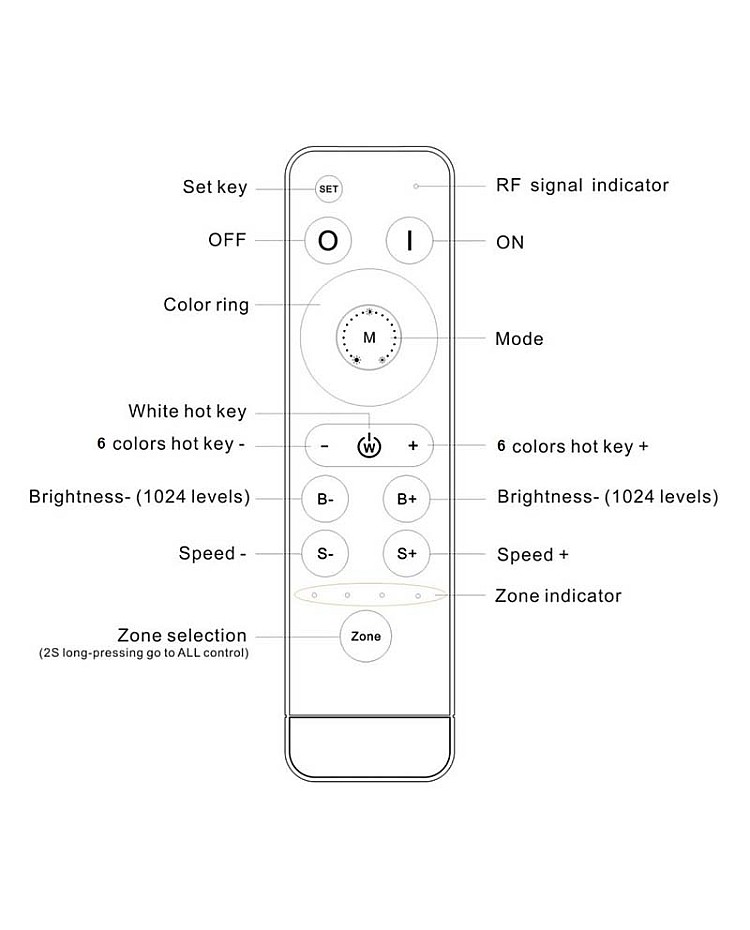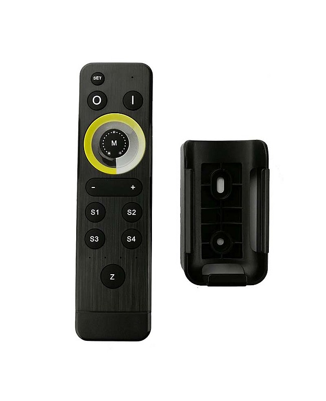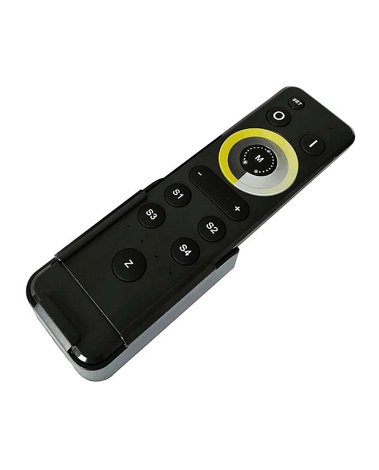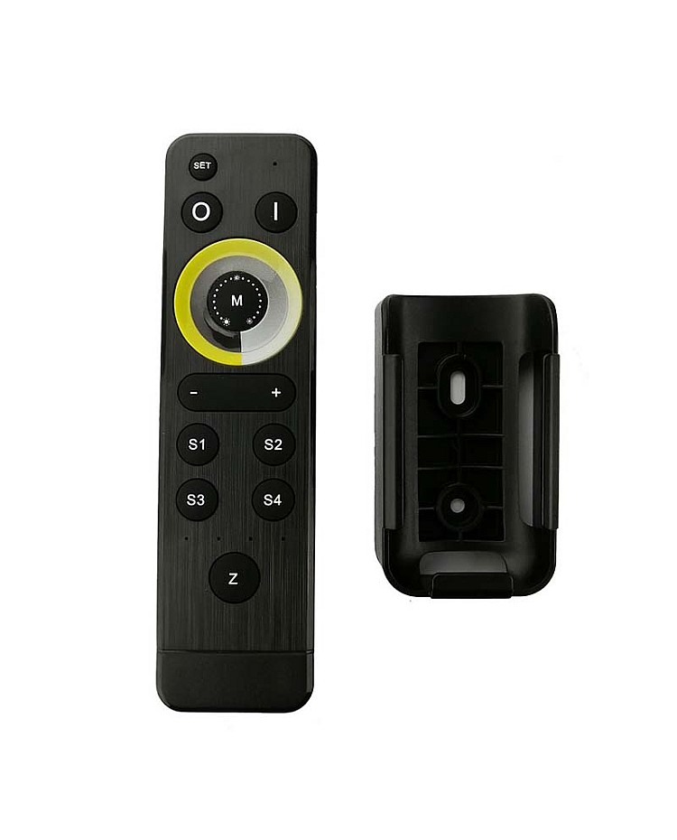 The 2.4G RF 4 zones CCT/Dim LED remote controls work on DC3V and are powered by 2PCS AAA batteries. Adopts the 2.4GHz RF wireless control technology and control distance up to 30 meters, compatible with HD/HC/QD/QC/DLC/DLS/DLK/T2 series LED dimming drivers and lighting dimmers. The LED remote control has a unique interface and is easy to use. The 2.4G remote with CCT/DIM 2 in 1 ring, you can use it to adjust the brightness or color temperature. With 4 4-zone control function, single-zone or overall control, the controlled area is shown with an indicator light. There are four sense buttons, a flexible scene control function, and easy-to-set-up different scenes with zones.
