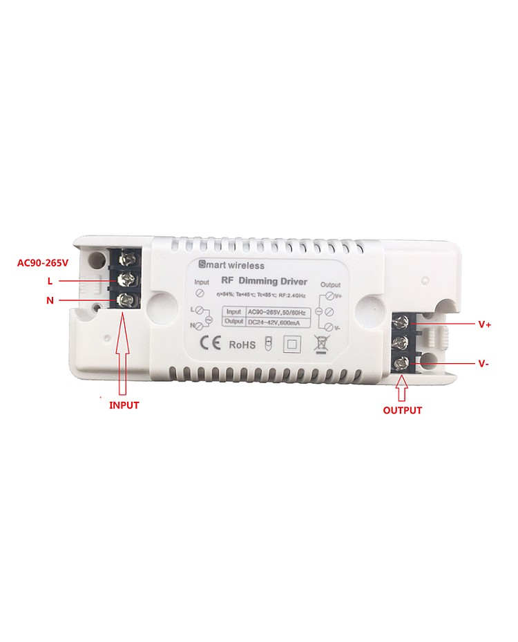 The 2.4G wireless constant current LED dimmable transformer has an isolated power supply design, high efficiency, high PF, and flicker-free. Protected from miswiring, overloading, over-voltage, and short circuit. adopts the advanced PWM technology, high-quality smooth dimming(4096 grades), 2.4GHz wireless control and air self-inspection sync control. Compatible with a free lighting control system, realized phone WiFi smart control, you can purchase the 2.4G RF LED remote separately to adjust the brightness of your LED light synchronously with the remote. You can use LED lamps, LED panels, ceiling lights, LED down lights, and other constant current lights in the home, shop, office, or hotel.