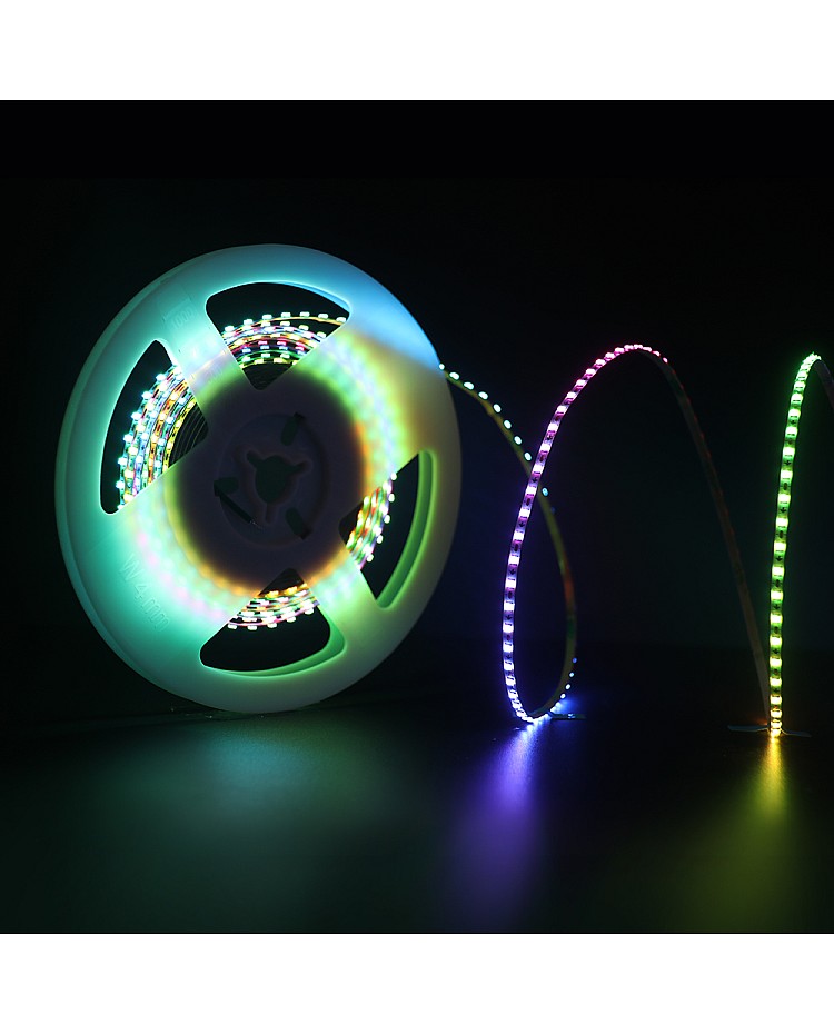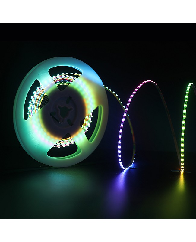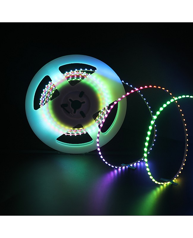 The ultra-slim individually addressable WS2812B LED strip offers unparalleled flexibility and control. Its slim design enables them to fit into tight spaces without compromising brightness or performance. A WS2812B IC controls each LED on the strips and can be addressed separately, allowing it to work with the SPI LED controller to achieve hundreds of lighting effects and stunning patterns. The minimum cutting length is 12.5mm, and every 2 LEDs can be cut and reconnected to fulfill your needs. The back features double-sided adhesive tape, making it easy to remove the protective paper and stick it to the desired installation location. Whether you want to create ambient lighting in your home or add a vibrant touch to your next DIY project, the 2.7mm narrow LED strip is perfect.