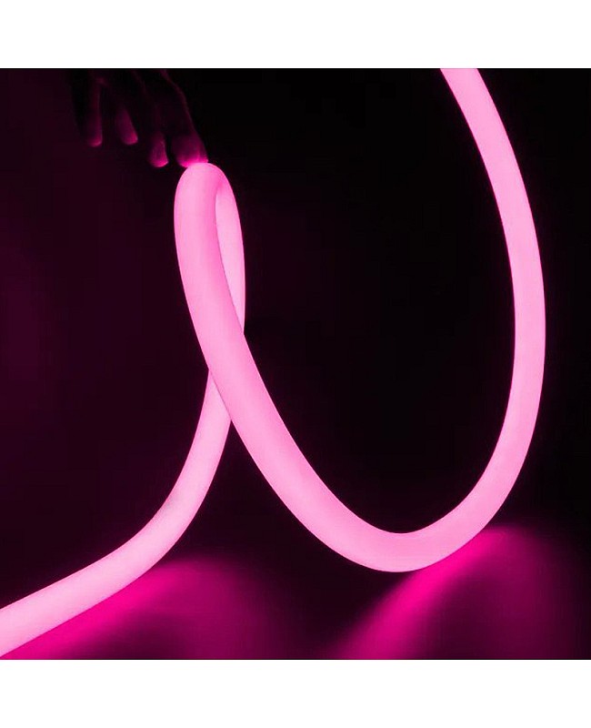 These round neon LED strips are ideal for indoor and outdoor lighting projects. They are highly flexible and have a uniform and soft luminance, making them perfect for curved and contoured surfaces. The waterproof level is IP65, and they resist UV, solvents, and saltwater. The strips have a unique optical light distribution structure, emitting 360° light without shadows. The LED neon light strips use high-quality 2835 SMD LEDs as the light source, with various emitting colors available, including warm white, neutral white, cool white, CCT, RGB, and RGBW. The diameter of the round neon strip lights is 25mm, and the minimum vertical bending diameter is 200mm. The minimum cutting length is 50mm. The two outer case colors available are black and white. They can also be used in restaurants, bars, and other entertainment venues to create a unique ambiance. They can be used indoors or outdoors to create an interesting and unique atmosphere in any space.