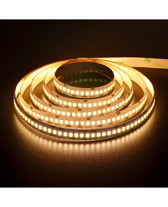 The 2835 240LEDs 24V LED strip, working in DC24V, uses high-quality 2835 SMD LEDs as a light source. Each meter of LED strip has 240 LEDs. The LED is built with high-quality Sanchip, and customers can select different color temperature LED light strips: warm white, neutral white, and cool white. The SMD LEDs are fixed on a dual-layer PCB board, backed with double 3M tape, for easy installation and fixing. It can be cut to the length of DIY work. different waterproof level products available, IP20, IP65, IP67 and IP68, the IP20 LED strips can work indoors, IP65, IP67 and IP68 LED tapes can work outdoor. All of them got CE, ROHS, and ETL certificates.