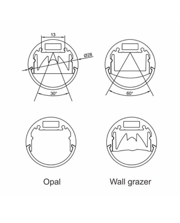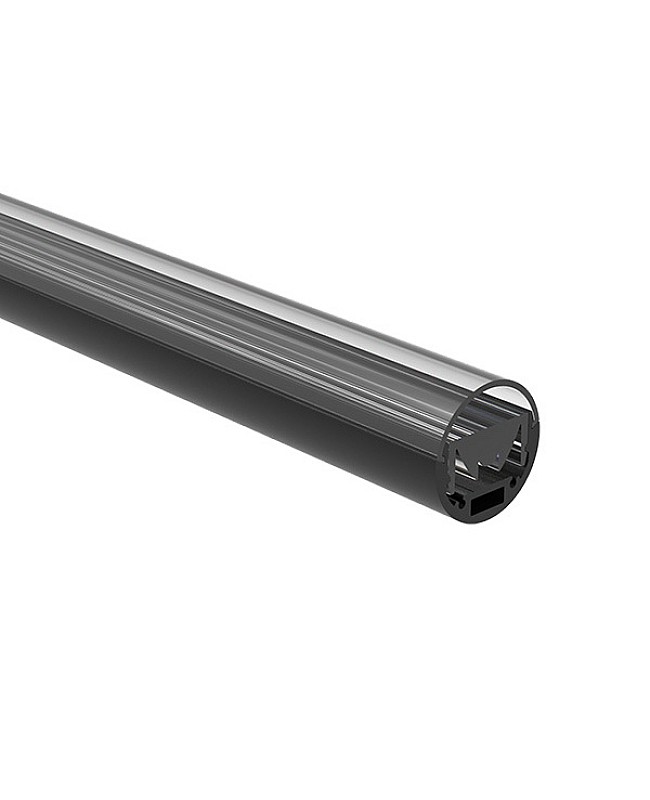 The round black LED extrusions, with a diameter of 28mm, can be mounted on walls and ceilings for accent lighting, task lighting, and more. There are ALP142-A models and ALP142-B models available for indirect lighting. There are four types of covers available: 30 ° lens + PC diffused cover, 60° lens + PC diffused cover, wall grazer lens + PC diffused cover, and PC diffused cover for various lighting effects. The LED extrusion is made of 6063-T5 aluminum material with an anodized black surface treatment, providing anti-oxidation resistance and a longer lifespan compared to similar products. The standard lengths are 1 m and 2 m, and cuttable and custom lengths are also available. The aluminum Extrusions are non-waterproof and only recommended for indoor lighting projects. The inner width is 13mm, making it easy to install flexible LED strips or COB LED tapes, allowing the maximum width of the Strip Lights to be 13mm. End caps and plastic clips are included and are easy to install on various surfaces, including walls, cabinets, ceilings, wardrobes, shelves, and more. The suspension wires are sold separately, which allows for pendant installation.