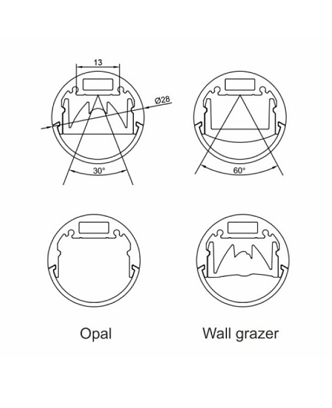 - Diffusers: 30° Lens + PC Diffused Cover, 60° Lens + PC Diffused Cover, Wall Grazer Lens + PC Diffused Cover, PC Diffused Cover