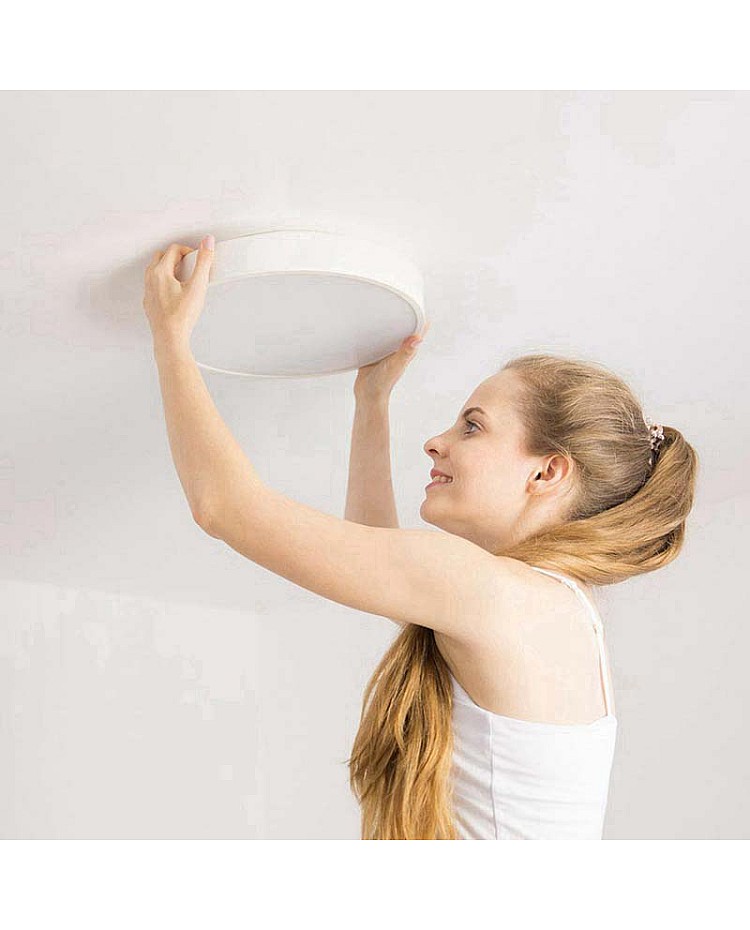 The Yeelight Ceiling Light, with its round shape design, a diameter of 32cm, and an IP60 dustproof design, can protect the ceiling lamp from dust and eliminate pesky insects. The Yeelight lamp uses 240PCS limited/OSRAM LEDs as the light source. The specially designed arrangement, unibody aluminum plate, and highly efficient cooling reduce light waste and ensure a longer lifespan. The color rendering index is up to 95Ra, providing a museum lighting effect. The Yeelight Ceiling Lamp with the innovative moonlight mode, which will look at the moon when turned on, is surprisingly comfortable. With the brightness down to 0.1lm, it will reduce glare and mitigate eyestrain. The Ceiling Lamp with a WI-FI module, through the MIJA APP or Yeelight App, connects your MI Band with the LED Ceiling Light, and your light will turn on automatically when you fall asleep. You can use the APP to control the Ceiling Light with a remote, sunrise mode, sunset mode, and selfie mode, save your favorite light settings, and recall them whenever you want with the tap of a finger. The Bluetooth remote control is included, and the dual-chip three-way dimming system offers a color temperature range from 2700 K to 6500 K, a brightness from 0.1 lm to 1800 lm, dimmable, and color temperature adjustable with just a touch from the remote control.