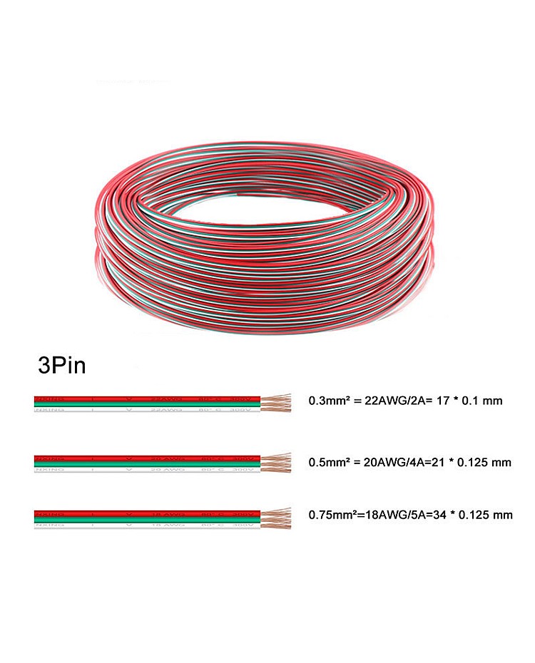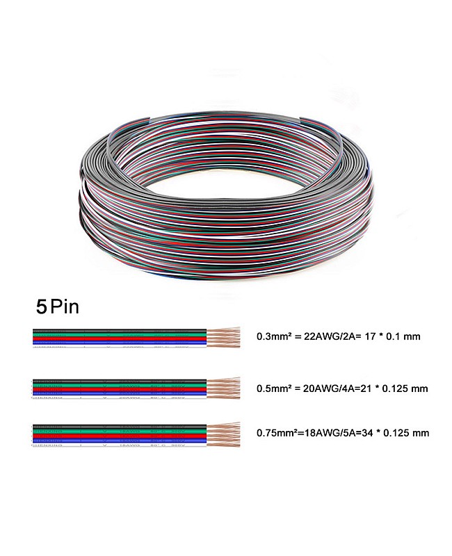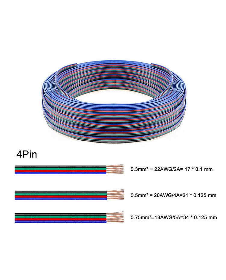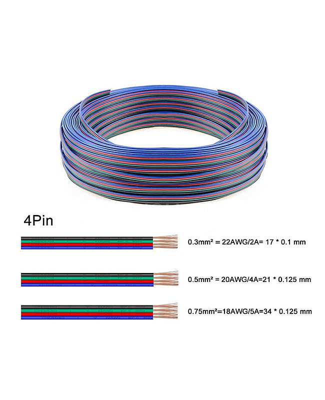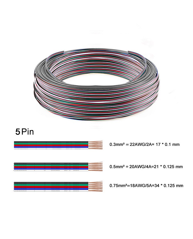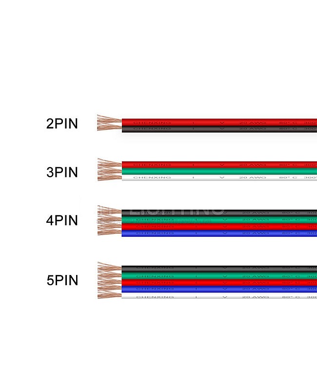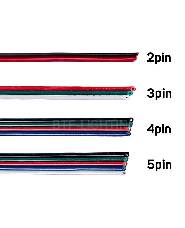 The extension LED light cable, each wire contains many high-quality pure copper thin wires stranded, the outer layer made of PVC insulation materials for strong tensile strength, super soft, easy to bend without breaking. There are four types of products available: 2PIN, 3PIN, 4PIN, and 5PIN. You can use 2Pin for single-color LED strips, 3Pin for CCT LED strip lights, 4Pin for RGB LED lights, and 5Pin for RGBW. Ten meters per reel, you can cut to any length for your project.