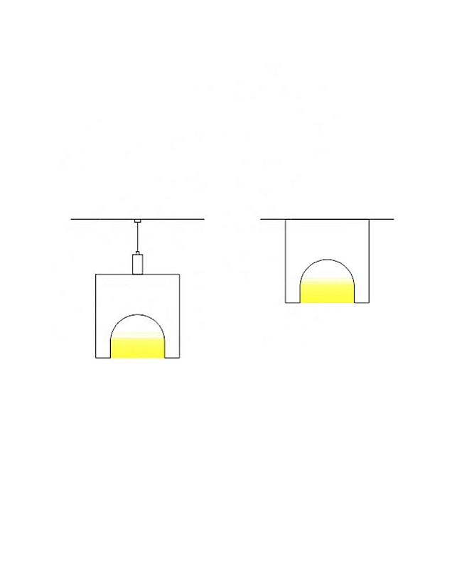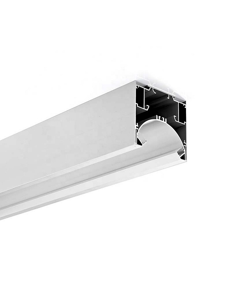 The 3.5-inch extruded aluminum LED housing, which is big for indirect lighting, allows for a pendant or suspended installation. Made of 6063-T5 aluminum alloy material with silver anodized surface treatment, better heat dissipation, anti-oxidation resistance, and a longer lifespan than similar products. The standard length is 1M, and the max length is 2.5 meters per piece, and can be cut to any size you want for the project. There are 2 slots, and the inner width is 12.5mm; you could install the 2PCS 5630, 2835, or 5050 flexible LED strips on it. 3 types of diffusers are available: the PMMA opal matte diffuser, PMMA semi-clear diffuser, and PMMA clear cover made of brand-stable material, anti-yellowing, perfect light distribution, and high light output. End caps, suspension wires, metal clips, and safety rope kits allow for the pendant or suspended installation. You could install them on the ceiling for indirect lighting.