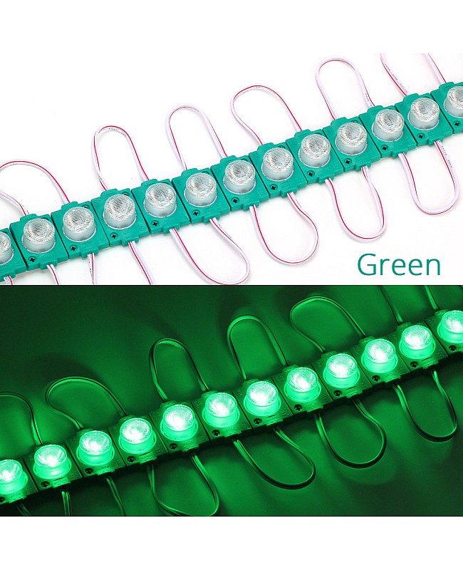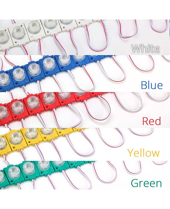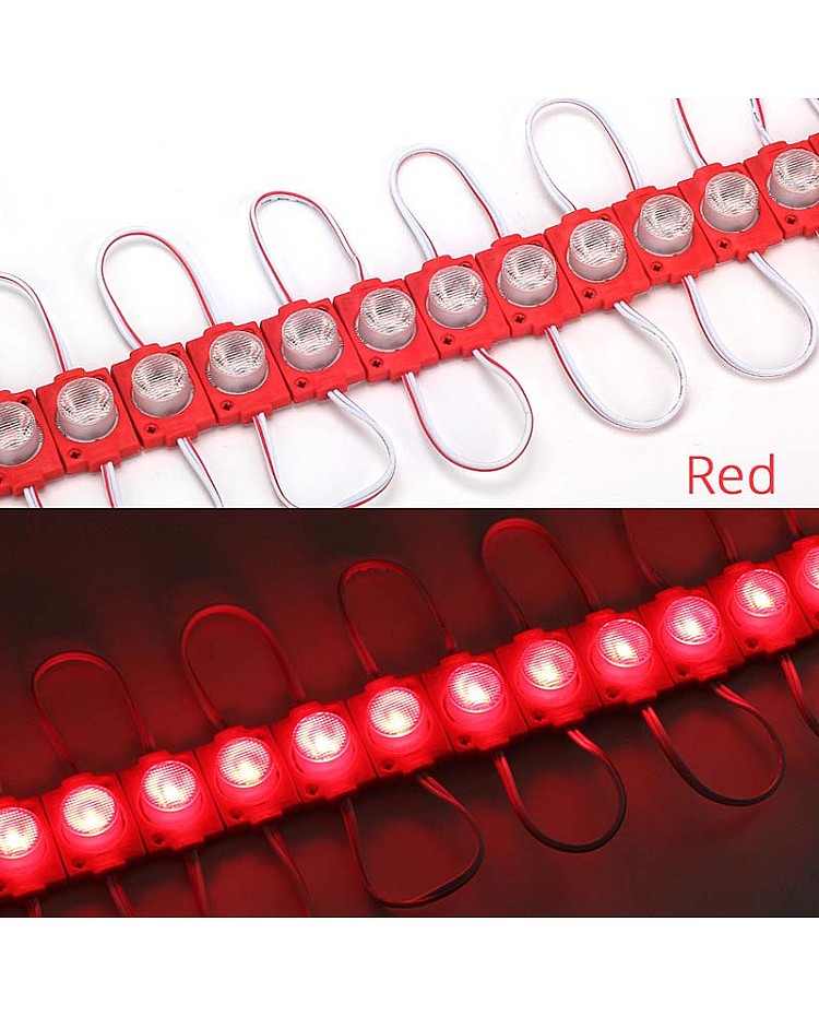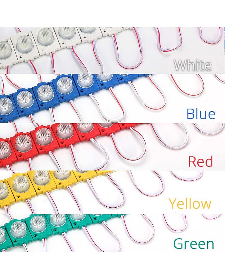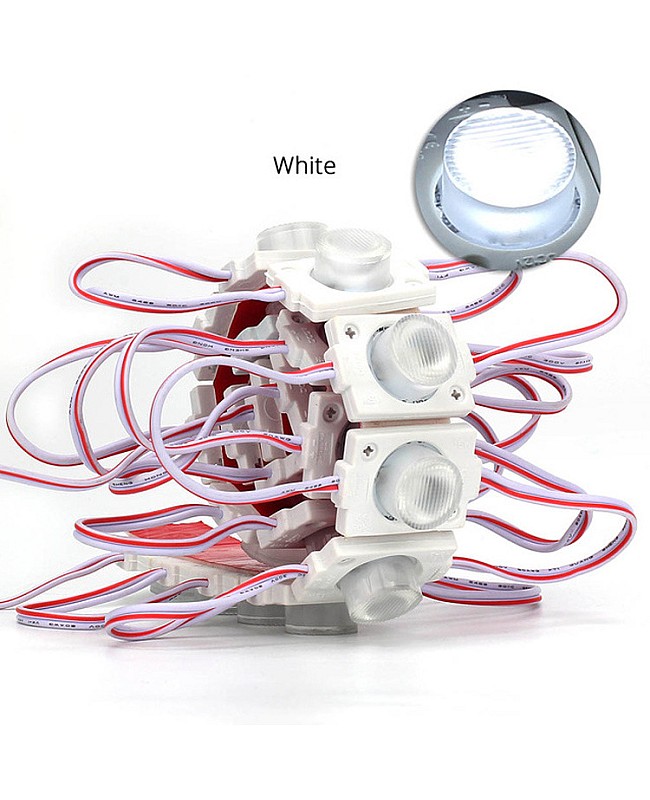 The LED sign lighting modules with PMMA Lens use one-piece high-quality 3030 SMD LEDs as a light source. The LEDs are mounted on the aluminum PCB board for better heat dissipation and a longer lifespan. The shell is made of PC and ABS material, and with an injection molding process, looks fashionable and tightly sealed for the best protection. Both sides have screw holes, you can fix them on the lighting project with screws. The LED modules have double-sided adhesive tape, are easy to fix, and use. Working on DC12V, safety to children and pets, with the constant current design, ensuring full brightness and stable working. The surface of SMD LED modules with the high light transmittance PMMA Lens, 45*15° beam angle, and IP rating of IP65 can be used for indoor and outdoor applications. The LED sign modules are 20 pieces per string, cuttable, and reconnectable, and you can cut any quantity and reconnect them for the project. You can use them as the backlight for lightboxes, signs, channel letters, or decorations for the holiday.