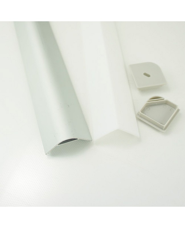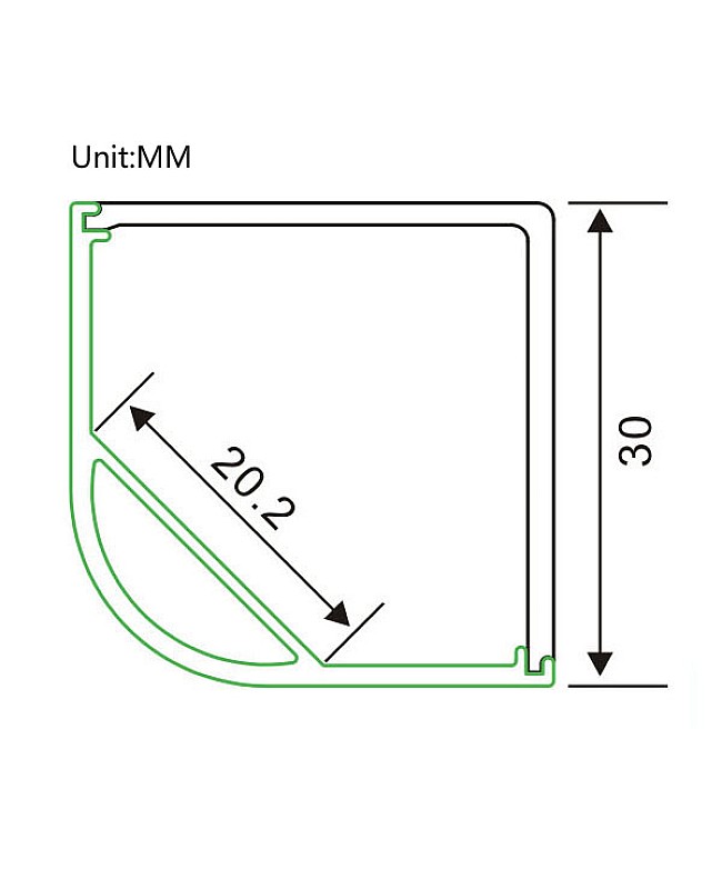 The aluminum extrusion profiles are designed to provide an attractive lighting look to any corner. With a 30mm size, they are versatile and can be used in various ways. They are commonly used in cabinets, tables, shelves, and other similar applications. Additionally, these profiles can be mounted on the corners of walls and ceilings, giving the space a clean and seamless finish. They are made of high-quality 6063-T5 aluminum alloy with an anodized finish, anti-oxidation resistance, and a longer lifespan. The inner width is 20.2 mm, allowing for a maximum width of Strip Lights of 20 mm. Recommend adding double rows of COB, 3528, or 5050 LED light strips as the light source, ensuring a uniform distribution without visible light dots or dark areas. The standard lengths are 1M and 2M, with a maximum length of 3 m. You can cut to any length that fits your needs. Three different covers are available: a PMMA opal matte cover, a PMMA clear cover, and a PMMA semi-clear cover. They are made of high-quality material from Germany, anti-yellowing, with perfect light distribution, and high output. The square PMMA covers also provide additional protection and durability, creating a bright, evenly illuminated space that ensures the corner profiles remain attractive and functional for years to come.