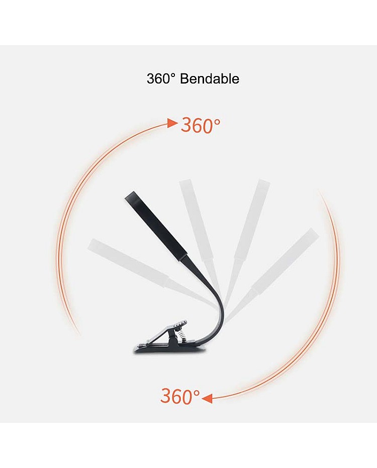 Check the LED Reading Light, which with the clip and can clip on books, tablets, mobile phones and kindle, 360° bendable, the bottom with a magnet, can be attached on metals. the LED Read Lamp built-in 200mAh battery and with the micro USB port, can insert into the USB port on PC, Notebook, wall adapter or power bank, it will be fully charged in 1.5hours when the LED Reading Light is charging, the color of the LED indicator light is red, after fully charged, the color of LED Light is blue. there is one-touch button on the backside, you can touch it to adjust the brightness from 10% to 100%. slightly press the button to switch the emitting color from warm white, white or warm white/white.