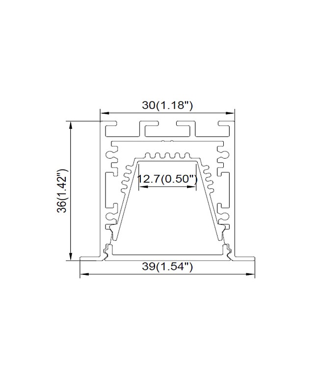 The recessed LED rope light channels, with a width of 39mm, allow for recessing into ceilings for commercial linear lighting in offices, restaurants, hotels, shopping malls, etc. The inner width is 12.7mm, allowing a maximum PCB board width of 12mm. Easy to install the SMD LED strips or COB LED tapes inside. An aluminum base can act as a heat sink to improve heat dissipation. Only one type of diffuser is available: PC diffused covers, made of imported material and anti-yellowing, with perfect light distribution and smooth light output. The LED rope light channels are made of 6063-T5 aluminum with a silver anodized surface, providing anti-oxidation resistance and a longer lifespan than similar products. The standard lengths are 1M and 2M, and custom lengths are available. The 90°, 90° vertical, and 180° connectors are available; you can purchase them separately and use them to reconnect LED light channels for various lighting projects. End caps and spring clips are included.