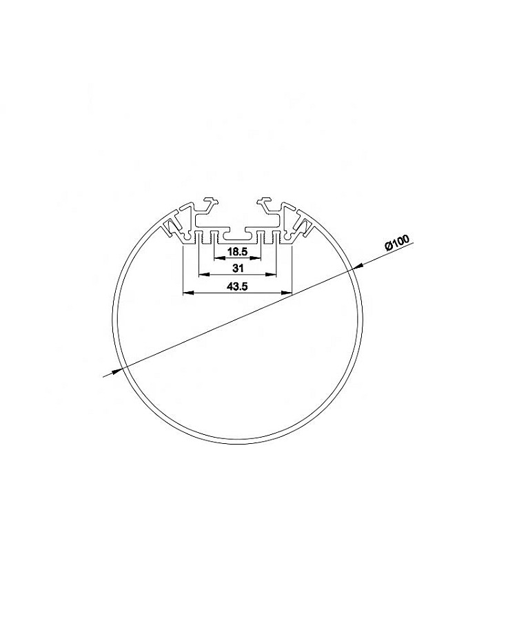 The 100 mm round LED profiles come with round diffusers to create a bright, even glow in residential and business settings. They are designed to transform LED strips into modern architectural pendant lighting. With its 100 mm diameter and 43.5 mm internal width, they support high-density COB LED strips of multiple rows of SMD LED strips, delivering bright and uniform light. Its suspended pendant design makes it an eye-catching centerpiece for both functional and decorative applications. The circular LED channels come with end caps, suspension wire kits, and 180° joiners available, allowing lighting designers to create seamless circular light lines or grouped cluster pendants. The stock lengths are 1 m and 2 m, and can be cut to any length easily. The aluminum channels are made of 6063-T5 extruded aluminum material and have an anodized finish for anti-oxidation resistance, and to provide excellent heat dissipation to extend LED lifespan. Only round PC diffused covers are available; they will diffuse the lighting, ensuring smooth, dot-free, and glare-reduced illumination. The end caps and suspension wire kits are included, and you can mount the LED profile light on the ceiling as pendant lighting. Perfect for modern offices, schools, stores, shopping malls, metro stations, and hospitals.