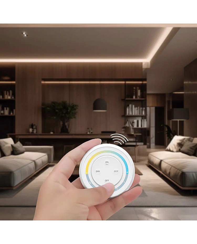 The MiBoxer S1W+ CCT remote is a versatile and convenient for controlling LED strip lights. With its easy-to-use design, you can effortlessly adjust your lights' color temperature and brightness to create the perfect ambiance for any occasion, whether you want a warm and cozy atmosphere or a cool and vibrant setting. The 4-zone design lets you control multiple areas or individual LED lamps simultaneously, giving you complete control over your lighting setup. The S1W+ utilizes advanced 2.4G RF wireless transmission technology, offering seamless control of MiBoxer LED lights: dual white lamps, single color spotlights, outdoor lights, etc. With a control distance of up to 30 meters, you can adjust the lighting according to your preference. It comes with a magnetic base holder, which is easy to take out and put back on the wall.