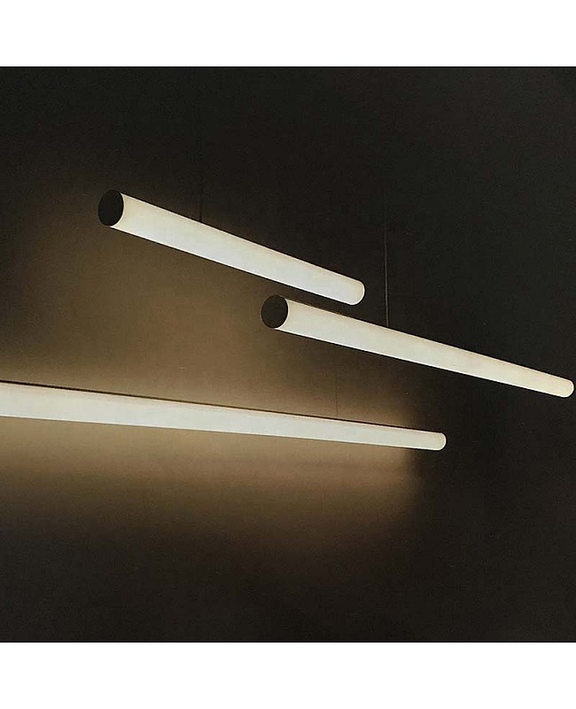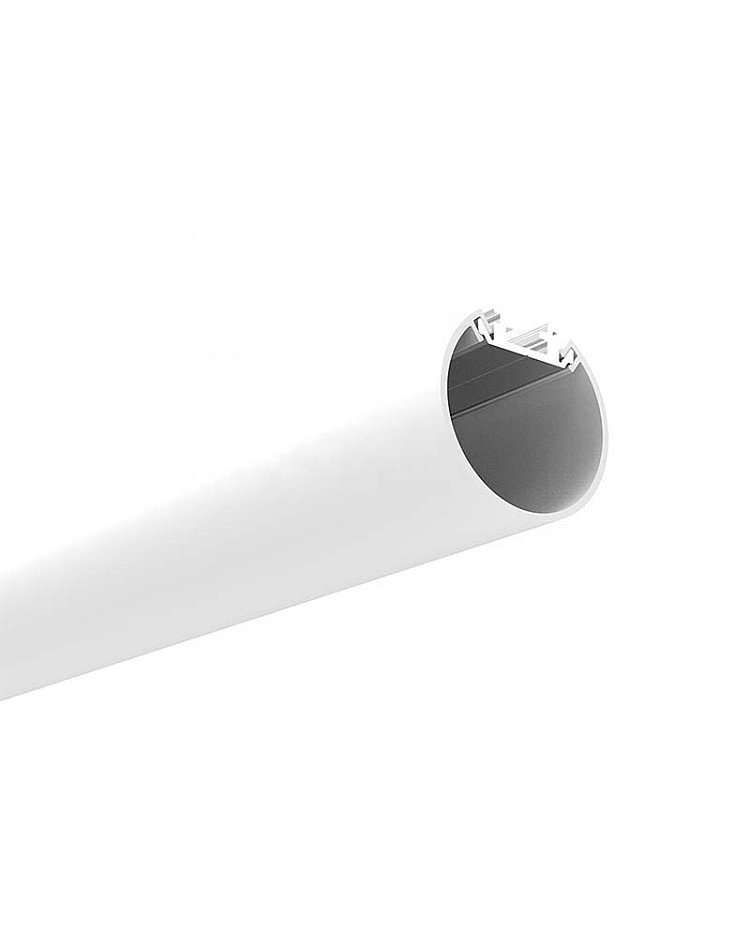 The LED profiles come with a round diffuser, 40 mm in diameter, that creates uniform, glare-free illumination, perfect for modern pendant lighting applications, delivering both high-performance lighting and sophisticated aesthetics. The inner width is 18.1 mm, allowing for a maximum width of 18 mm for the LED strips. Recommend adding high-density COB LED strips as the light source to achieve consistent light output, thereby eliminating dark areas and light spots. The LED strip diffusers are made of 6063-T5 aluminum alloy with a silver anodized surface treatment, providing anti-oxidation resistance and a longer lifespan compared to similar products. The standard lengths are 1 m and 2 m, and they can be cut to any size for your project. The round diffusers are made of brand-stable PC material with a wide viewing angle, designed to provide a large coverage area, allowing lighting to be evenly distributed throughout a room or space. The suspension wires are included for pendant installation.