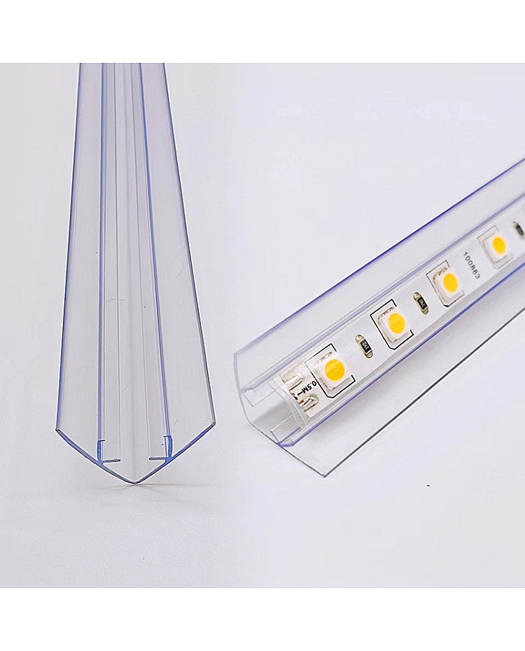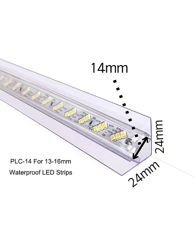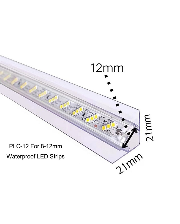 The plastic LED strip channels feature a 45-degree V-shaped design that perfectly fits corners, edges, and angled surfaces, providing a smooth, continuous lighting effect. Low-profile design blends seamlessly into modern interiors, kitchens, cabinets, staircases, and accent lighting. They offer a cost-effective and straightforward solution that enables you to add a clean, diffused light effect. The plastic LED strip channels are made from high-quality PVC material, which is lightweight, durable, and long-lasting. The V-shaped design enables easy installation in both indoor and outdoor corner areas. The standard length is 1 meter and 2 meters per piece, and it is easy to cut to the desired length. Four types of corner LED profiles are available: PLC-18, PLC-14, PLC-12, and PLC-13. The PLC-13 PVC channels are designed for use with bare-board and surface-coated waterproof LED strips, allowing you to mount them directly on the channels and use them indoors. The PLC-18, PLC-14, and PLC-12 feature a slot design that enables the mounting of IP67 and IP68 waterproof LED strips for both indoor and outdoor applications.
