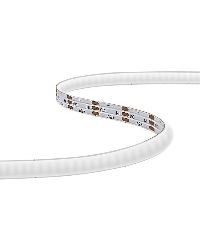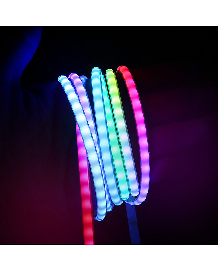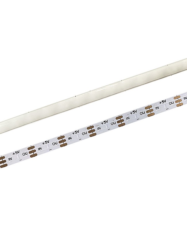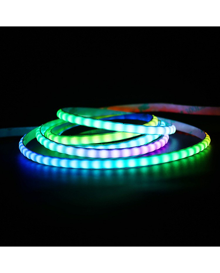 The WS2812 COB programming LED strip lights, with a 5mm width, make them well-suited for tight spaces. The 5VDC working voltage allows them to be powered by batteries. It's a great way to add color and mood lighting in a tight location. The individually addressable feature will enable you to program them to create unique patterns, effects, and animations. With the latest chip-on-board technology and a super-narrow design, measuring only 5mm in width, the 160 high-quality LED chips are mounted on a one-meter dual-layer PCB board to create seamless, dotless linear lighting. Without visible light dots and dark areas, uniform light emission. The super-slim programmable LED strips, featuring an individually addressable design, utilize the WS2812 IC to control every LED chip, enabling a range of colorful and dynamic effects. 256 levels of brightness and a 24-bit color display. Flexible, bendable, and cuttable, the minimum cutting length is 12.5mm. It operates on 5V DC and can be connected to a power bank, wall adapter, or batteries to illuminate. The back features double-sided adhesive tape, making it easy to install. The waterproof level is IP20 non-waterproof, only recommended for indoor or dry location use. You can use them in cars, furniture, toys, models, and for DIY projects.
