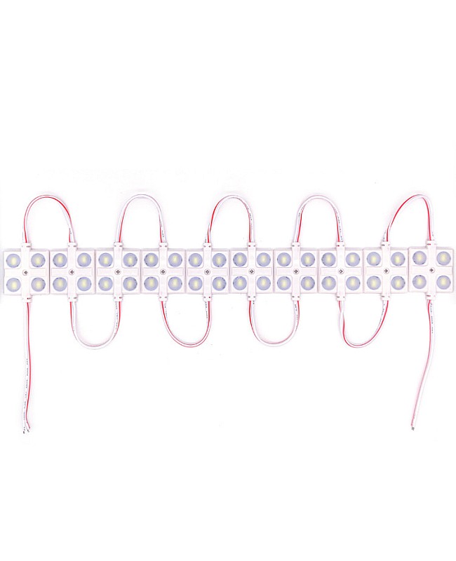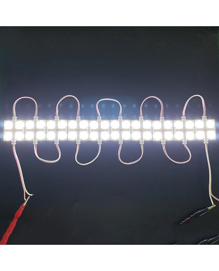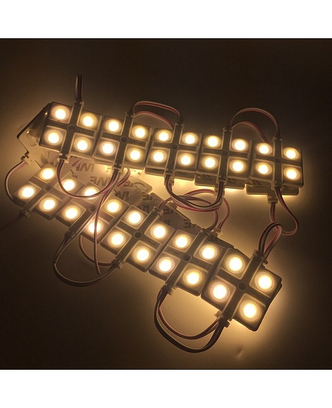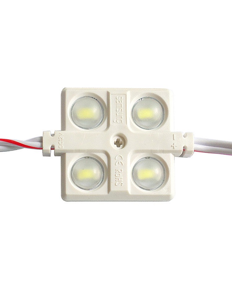 The injection square 5730 LED light modules, which are made with the injection molding process technology, use 4PCS high-quality and super bright 5730 SMD LEDs as the light source. The LEDs mounted on the aluminum board and in the ABS shell look fashionable, fireproof, work on DC12V, and are safe for your children and pets. They have a PC lens for a wide beam angle. The IP rating is IP65, which can be used for indoor and outdoor projects. 20PCS per string, cuttable and reconnectable, can be cut to any quantity and reconnected. The back has double-sided adhesive tape and the center with a screw hole, easy to fix them on the place you want to install by taking off the protector on the tape to stick on the project or using the screws. The SMD LED light modules work in DC12V, making it easy to connect to the LED light power supply to light up or connect to the LED light dimmer to adjust the brightness. You can use the LED light modules as the backlight for the signs, channel letters, billboards, advertisement boards, etc., and they can also be used for the reading light, ambient light for your cars, trucks, vans, and pickup trucks.