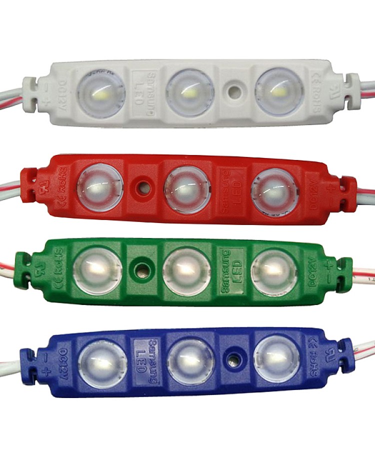 The 5730 injection LED sign lighting modules, working in DC12V, use three pieces of 5730 SMD LEDs as light sources, white, blue, red, and green colors available, can be used for sign letters, backlights, store window lighting, and display case lighting. Waterproof level is IP65, view angle is 120 degrees, the output is up to 60 lumens, backed with 3m double-sided tape, easy to install and use. longer lifespan over 40000hours, provide 2 years warranty