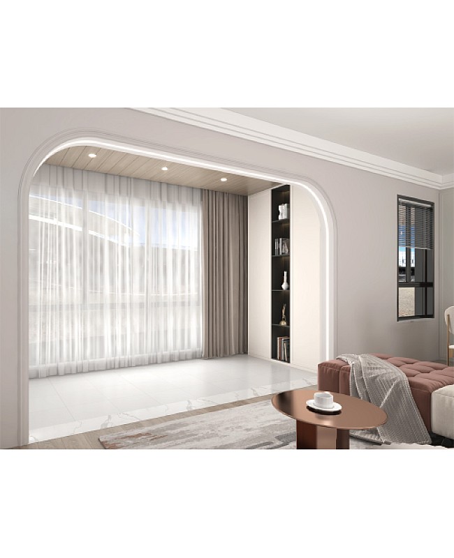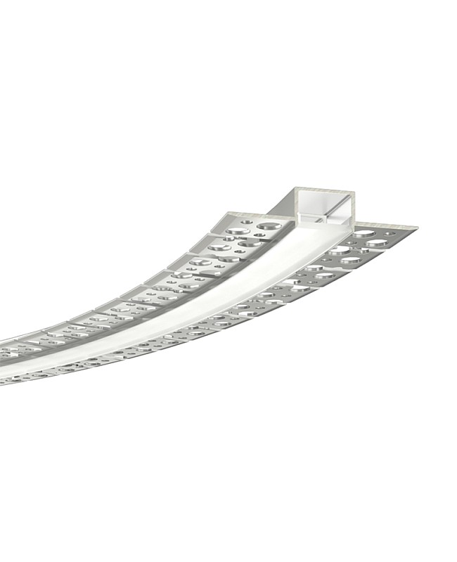 The 59mm aluminum channels are designed for housing LED strip lights and seamless integration into drywall, plasterboard, or other mudded surfaces. They are bendable, allowing for smooth curves and custom shapes, making them ideal for arched ceilings, curved coves, and creative architectural lighting. The LED strip profiles are made of 6063-T5 extruded aluminum material and feature a silver anodized surface treatment for enhanced longevity. The stock lengths are 1 m, 2 m, and 3 m, and can be cut to any size. The inner width is 16.3mm, allowing you to add various widths of high-density SMD or dimmable CCT COB LED strips for uniform illumination without hotspots. Only one type of diffuser is available: a semi-clear, high-quality silicone material, which helps diffuse the lighting evenly. The max length of the silicone covers is 50 meters per roll and is cuttable; you can use them for interior long, continuous linear lighting. Two types of bending products and straight ones are available; you can combine them for your custom projects. The bendable features allow them to be used in a wide range of applications, such as under-cabinet, cove, and accent lighting in residential or commercial spaces, used to accentuate architectural features like arches, columns, and unique structural elements.