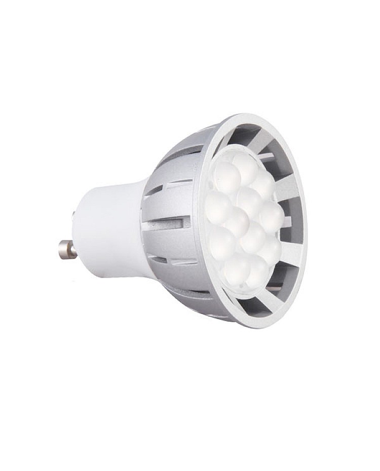 The GU10 LED lamp works on AC voltage and can replace incandescent bulbs. It uses 12 pieces of high-brightness 2835 SMD LEDs as the light source and has a patent aluminum shell for better heat dissipation. With an improved LED driver, it has low power consumption and saves more than 80% of energy compared to incandescent lamps. It does not emit UV or mercury, is CE, ROHS certified, and has a 2-year warranty. It can be used in buildings, homes, hotels, showrooms, offices, and schools.