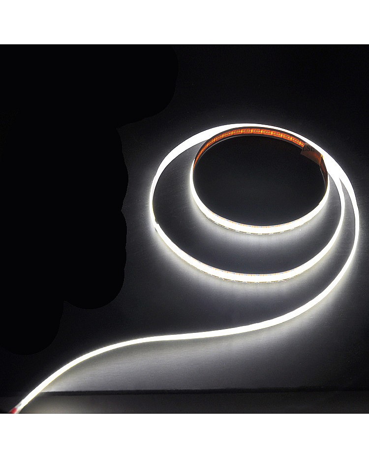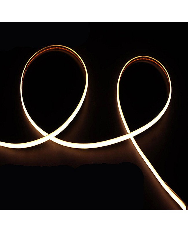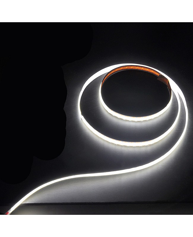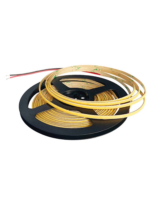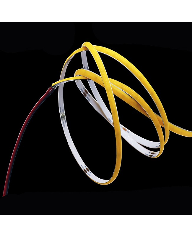 The 24V COB LED strip light has a narrow size of only 5mm, with 504PCS high-quality LED chips mounted on a 1-meter double-layer gold-plated FPC board, flexible and bendable. The high density of LEDs creates a seamless line of light, with NO dark areas and NO hotspots, and uniform light emission. 90Ra+ for high-quality color rendering. DC12V and DC24V products are both low-voltage and safe for kids and pets. 24VDC for longer max runs can work with dimmers to adjust the brightness from 0 to 100%. There is double-sided adhesive tape on the back of the COB strip lights. Removing and sticking the protector paper to where you want to install it is easy. The IP rate is IP20 non-waterproof and only recommended for indoor lighting projects. The 5mm COB LED strips are cuttable. The minimum cuttable length is 7.94mm, which can be cut to any size for your project. Various white colors are available, and you can choose warm white, natural white, and daylight white for multiple scenes. The 24V LED strip lights have a UL certificate and a three-year warranty.