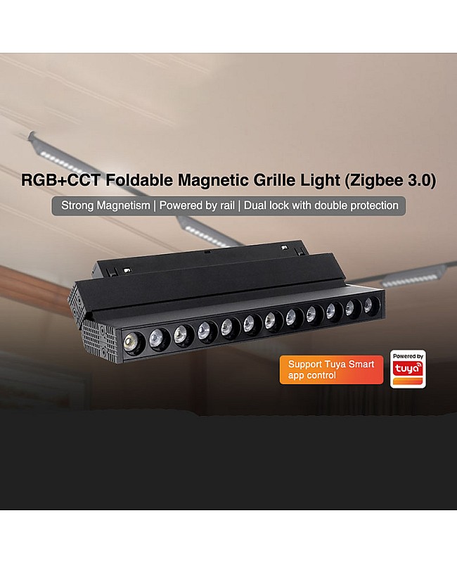 The MiBoxer black foldable Zigbee 3.0 RGB+CCT magnetic track light is a great way to add extra light to any room. With a foldable structure, strong magnetism design, and dual lock with double protection, it easily fits into any space. The adjustable track system allows you to customize the lighting to your needs. The magnetic lighting follows the Zigbee 3.0 protocols and is powered by rail, which can be moved randomly on the rail. There are two power versions available, 6W and 12W. The Zigbee lights use high-quality LEDs as the light source, and the surface is covered with a PMMA lens for large beam angles. It has a high-quality metal shell for better heat dissipation. After adding to the Zigbee 3.0 network, the remote control and a smartphone app can be controlled, and third-party voice commands can be used to set the color and adjust the color temperature, brightness, and saturation for various scenes. There are 16 million colors available, color temperature adjustable from 2700K to 6500K, and brightness adjustable from 1% to 100%. It can also be entered into Philips Hue, IKEA TRADFRI, Amazon Echo Plus(2nd Gen), Echo(4th Gen), Echo Studio, and Echo Show(2nd Gen) standard Zigbee 3.0 hubs. You can download the APP to your phone to activate further functions like biorhythm, music rhythm, timing setting, scene customization, device sharing, sleep/wakeup plan, do not disturb mode, tap-to-run/automation, etc.