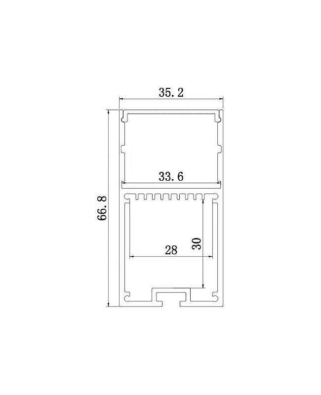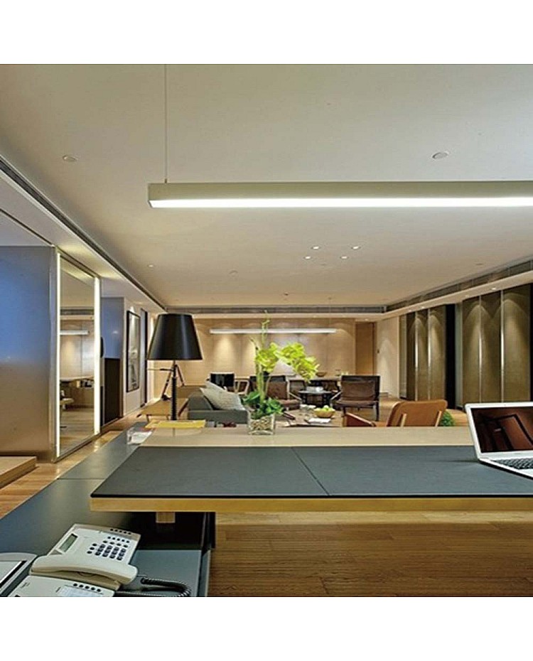 The 66.8mm deep LED channel allows ceiling pendant or surface-mounted installation. It is an excellent choice for various lighting projects, perfect for creating a modern, industrial look in any space. The end caps and suspension wires are included; you can hang them on the ceiling or mount them on the surface of the LED project. Made of 6063-T5 aluminum alloy material with silver anodized surface treatment, anti-oxidation resistance, extremely durable, and resistant to corrosion, has a longer lifespan than other similar products. The inner width is 33.6mm and allows the max width to be 33mm, recommend adding high-density COB LED strips as the light source, with no light spots or dark areas, and consistent light output. The aluminum channels can be used as heat sinks for better heat dissipation, extending the LED strips' lifespan. Easy to install, and comes with all the necessary hardware and accessories. There are 3 types of diffusers available: the PC series and PMMA series, made of brand-stable material, anti-yellowing, with perfect light distribution, and even light output. The standard length is 1M, and the max is 3 m. It can be cut to any size to fit any scene.