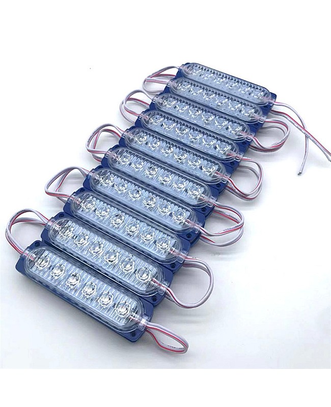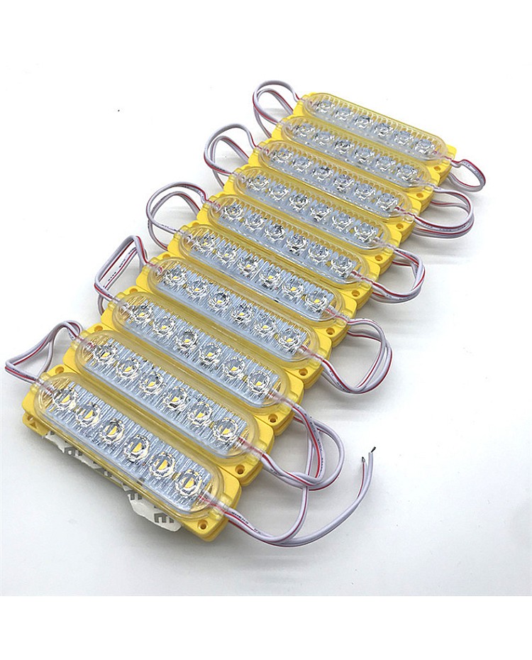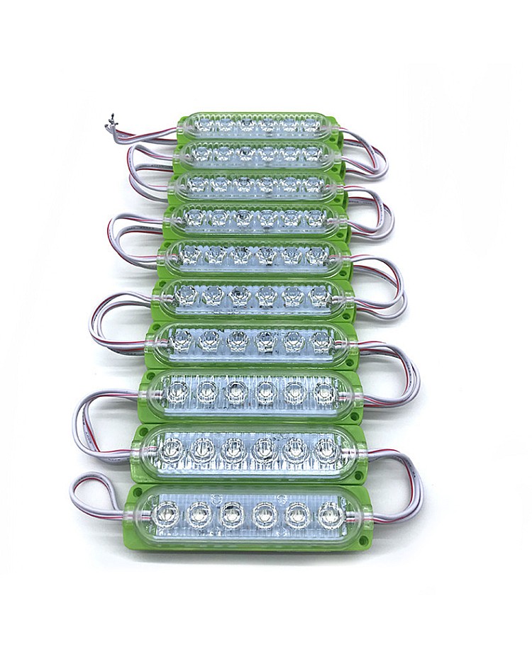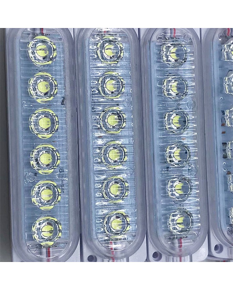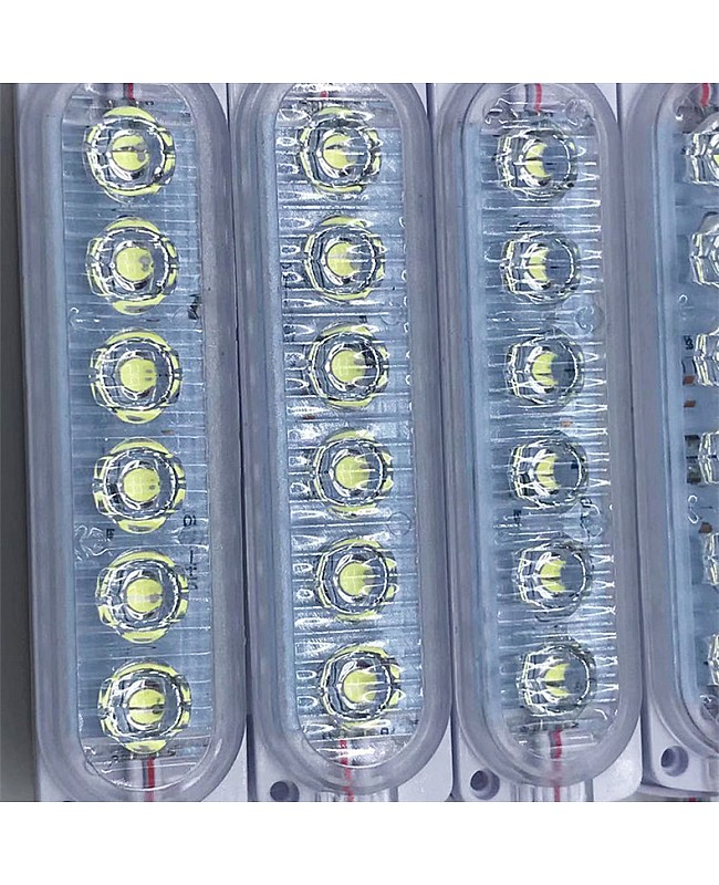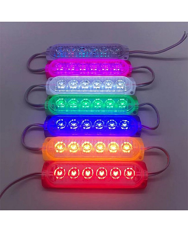 The 6 LEDs LED module replacement for Trucks, you can use them as the warning light, indicator light, or sidelights for pick-up cars, trucks, vans, etc. 20PCS per string, cuttable and reconnectable, you can cut to any quantity and reconnect them for your project, the back with double side adhesive tape and the surface with dual screw holes, you can take off the protective paper on the stick and stick them on the place you want to install, or use the screws to fix them. the 12V LED module replacement uses 6PCS high-quality and super-bright SMD LEDs as the light source, the LEDs mounted on the aluminum board and the surface with PC optical lens, for better heat dissipation and wide beam angle. The 6 LED modules working in DC12V can be connected to the battery in your car to light up easily, or connect to the power supply with a 12VDC output. The IP rate is IP65 waterproof so that you can install them in a damp location. You can also use them for displays, stage and theaters, signs, machines, windows, under-cabinets, channel letters, etc.