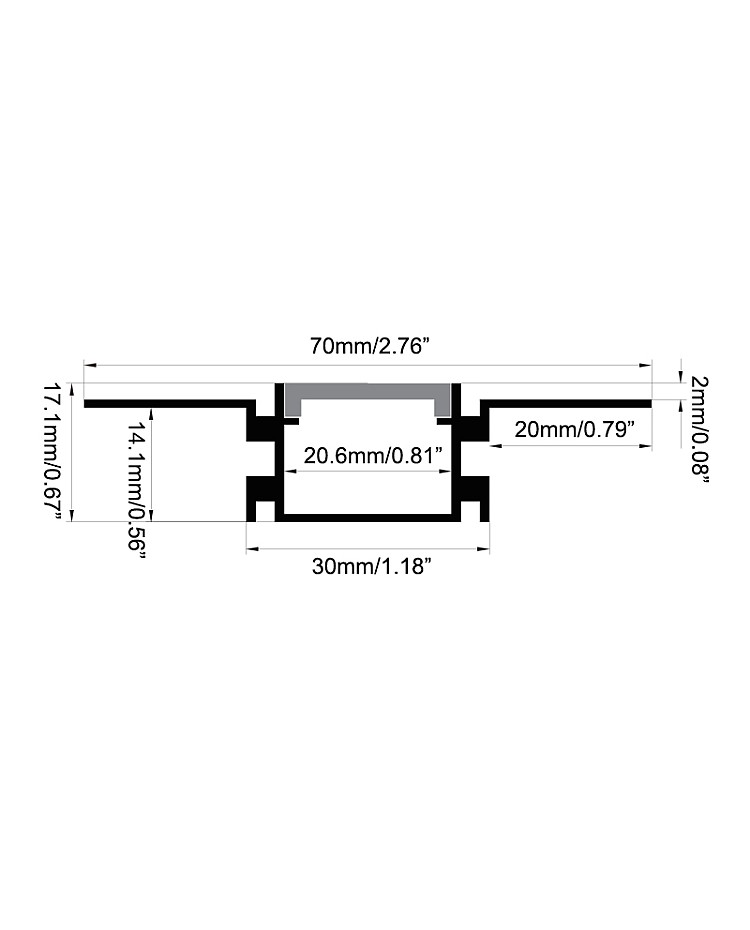 The 70mm bendable LED tape light extrusions enable seamless integration on drywalls, providing flexibility for creative lighting applications. There are side-bendable and up-down-bendable products available, allowing for bending along curved surfaces, corners, and unconventional shapes, which enables unique lighting effects and patterns, ideal for modern lighting design. These LED extrusions are designed to be mounted flush with the surface, providing a clean, unobtrusive look that seamlessly blends with any decor. They are made of 6063-T5 extruded aluminum material and feature a silver anodized finish for enhanced oxidation resistance and a longer lifespan. The stock lengths are from 1M to 3M and can be cut to any size to fulfill your needs. Only semi-clear silicone LED tape covers are available, made from high-quality silicone material for even light distribution, reduced glare, and a soft, ambient glow. The inner width is 20.6mm. For the side-bending products, you can install the LED strips on the side or the bottom; the max width of strip lights for the side mount is 12mm; you can install SMD or COB strip lights as the light source, and you can install 20mm s shape zig zag SMD LED strips on the bottom. For the up-down bendable products, the maximum width of tape lights is 20mm. End caps with and without wire holes are included.