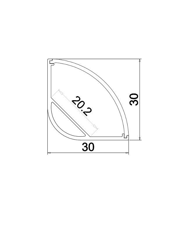 The 90-degree LED channels are an excellent way to provide bright and even lighting that fits snugly inside corner spaces, such as underneath countertops, product displays, or in the corner of a room. They are ideal for lighting in shops, cabinets, under-counter areas, walls, ceilings, and more. They are made of high-quality 6063-T5 aluminum alloy material with an anodized finish, offering anti-oxidation resistance and a longer lifespan compared to similar products. The standard lengths are 2M, 2.5M, and 3M per piece, and can be cut to any size to meet your needs. Six different covers are available: PMMA opal matte cover, PMMA semi-clear cover, PMMA clear cover, PC clear cover, PC semi-clear cover, and PC diffuser cover, each with varying lighting transmittance. The Channel LED Diffusers are made of brand-stable material, are anti-yellowing, and have perfect light distribution. The inner width is 20.2mm, allowing for a maximum width of 20 mm for the LED strips. Recommend adding high-density COB or SMD strip lights as the light source without visible light spots and dark areas. The aluminum base serves as a heat sink, facilitating better heat dissipation and extending the lifespan of linear LED lights. End caps (with wire holes and without wire holes) and metal clips are included, easy to install, and suitable for both indoor and outdoor use.