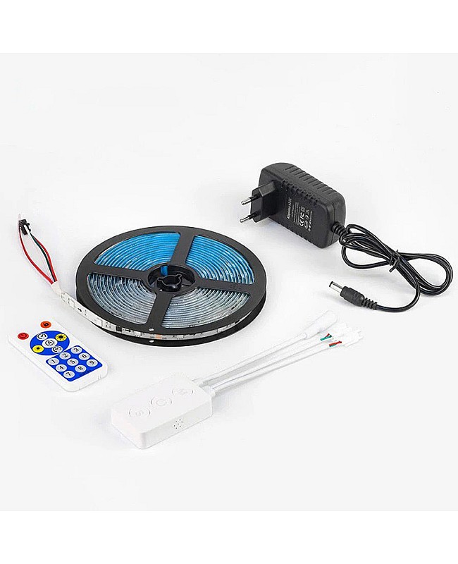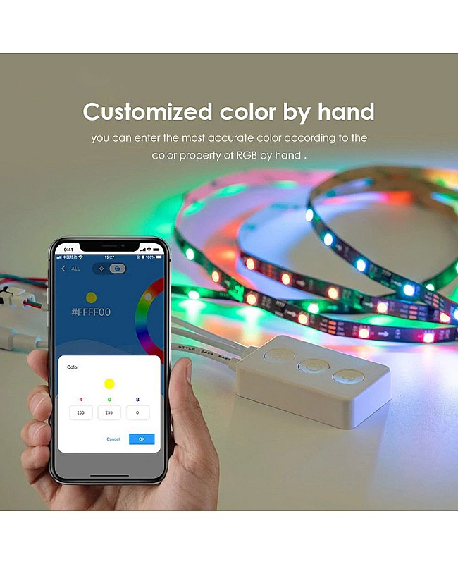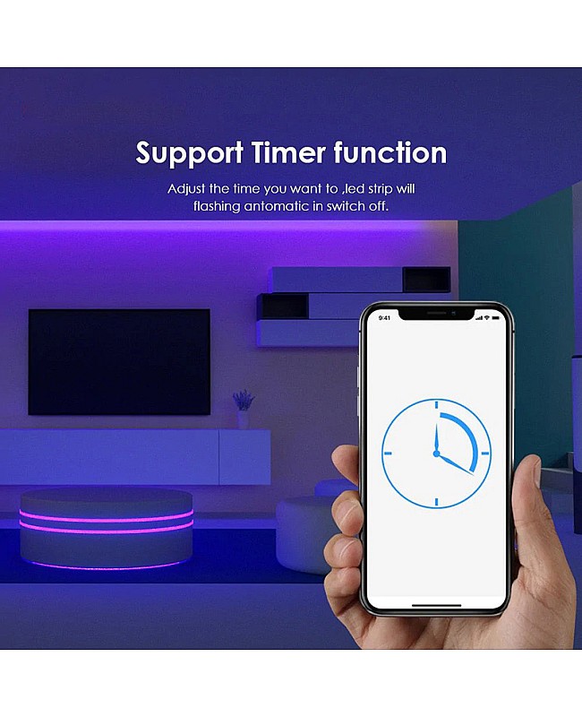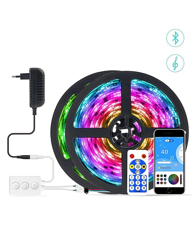 The RGBIC LED Strip Light Kits allow you to choose from 5M, 10M, 15M, and 20M versions for your project. The Kit includes RGBIC LED Strips, an SP601E Controller, a 16Keys RF Remote Control, and an LED Power Supply, which is easy to install and light up. The Programmable Light Strips With Remote utilize high-quality 5050 SMD LEDs as the light source, with each 3PCS LED controlled by one IC, resulting in 30PCS LEDs and 10PCS ICs per meter. The minimum cutting length is 10cm; you can cut to any length and reconnect for your project. Two types of waterproof versions are available: the IP30 non-waterproof and the IP65 waterproof. The back has double-sided adhesive tape, which makes it easy to stick to where you want to install. The RGBIC LED Strips can be controlled by three physical buttons on the Controller, the Remote Control, and app control through Bluetooth. With the Controller with dual output ports, you can choose individual control for each channel or control them together. You can adjust the brightness or speed for each scene, with nine available scenes. The side of the Pixel Controller features a built-in microphone, allowing the Controller to fully adapt to the music's rhythm. You can use the app to launch the timer function and set the Remote Control automatically to turn the LED strip lights on or off. You can enter the most accurate color according to the RGB color property by using a band on the app. There are 16 million colors available.