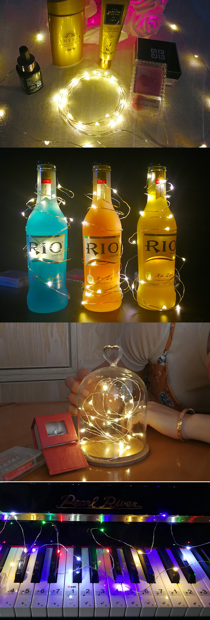 The LED copper light uses high-quality 0603 LEDs as the light source. The output power is only 1W, energy-saving, and environmentally friendly. The copper light is powered by 2PCS 2032 cell batteries(included). You can choose different emitting colors of LED string lights; are three models available: 10 LEDs per meter, 20 LEDs per meter, or 20 LEDs per 2 meters. The waterproof level can reach IP67, and you can use them in outdoor applications too. The battery-powered LED string can be used in holidays, Christmas, Weddings, parties, Halloween, and furniture decoration.