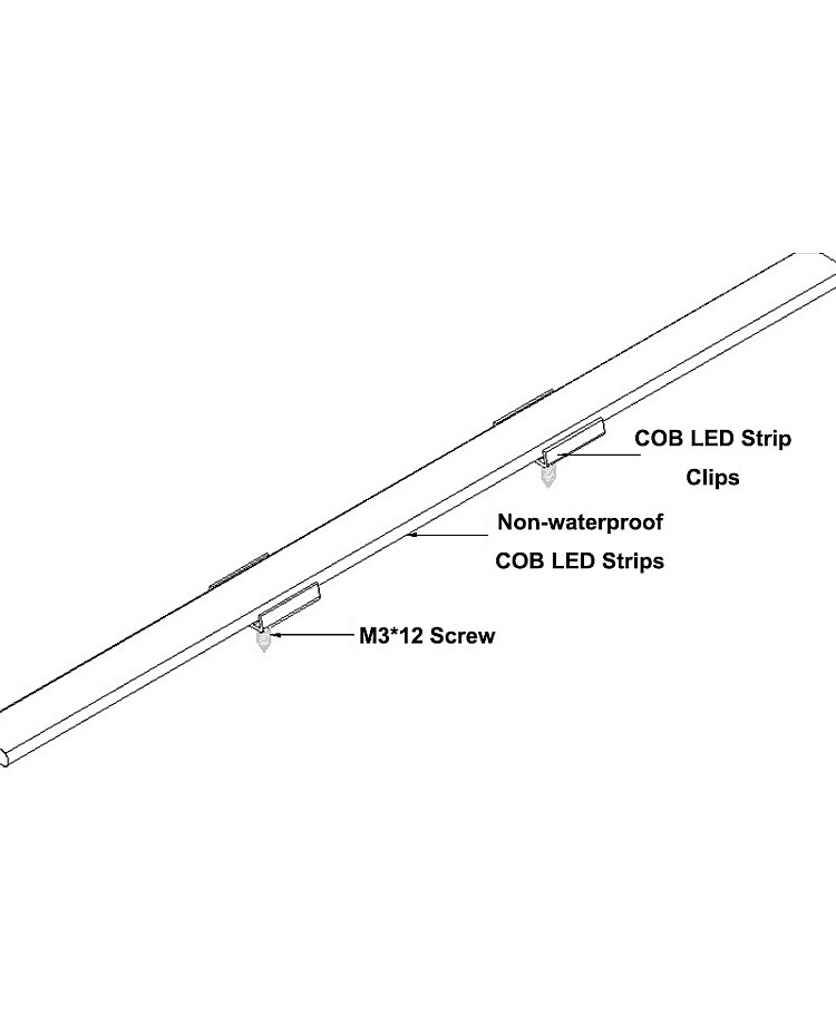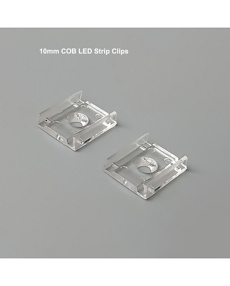 The plastic mounting clips allow you to mount the non-waterproof COB LED strips on walls, ceilings, and other surfaces. If you worry that they will fall off if you use only double-sided adhesive. They are made of plastic and are clear, almost invisible. There are three product widths available for 8mm, 10mm, and 12mm COB tape lights.