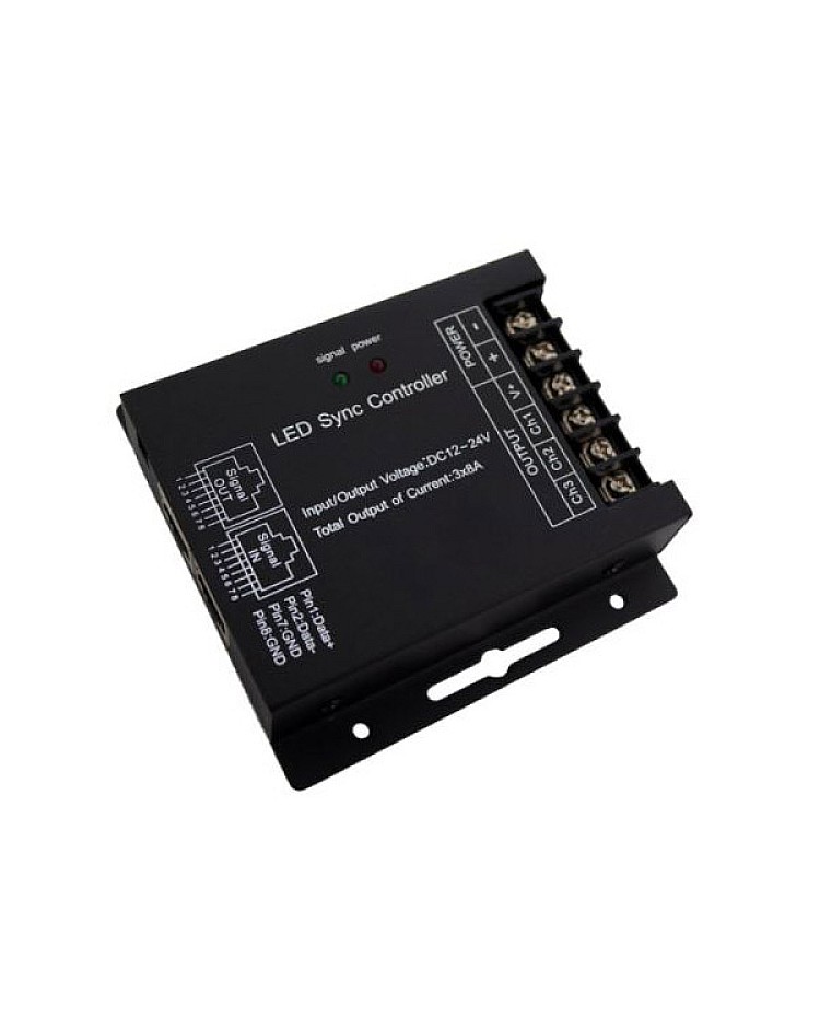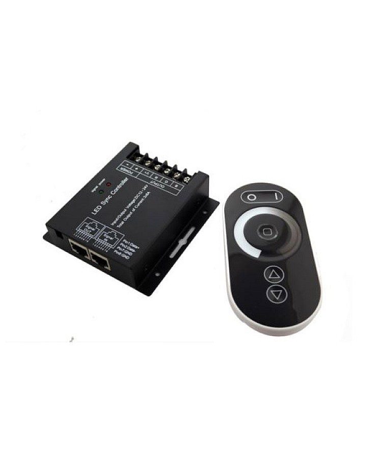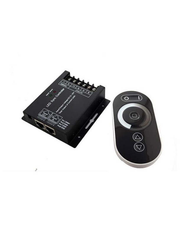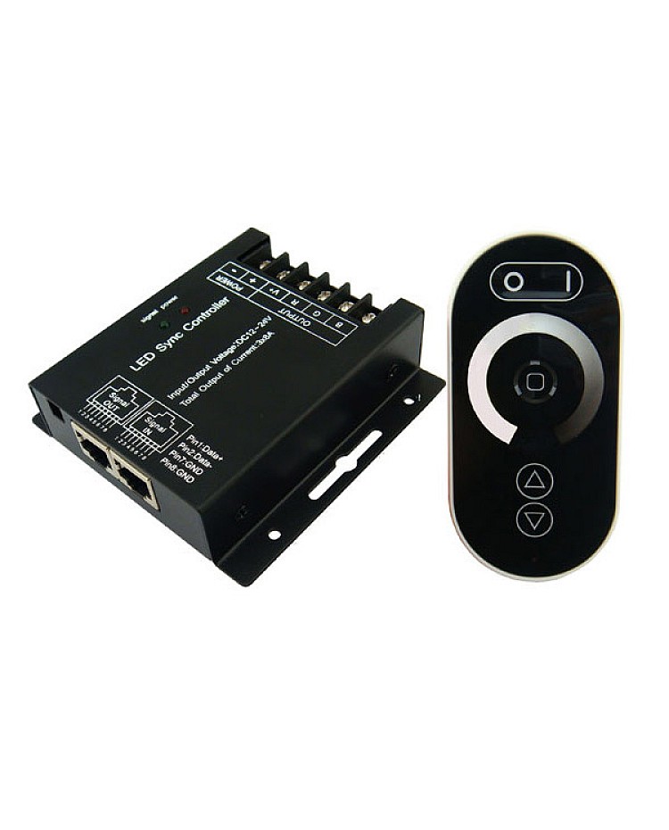 The DC12 dimmer switch for LED adopts the advanced PWM digital dimming technology, which can work in DC12V or DC24V, with 3 channels of output, and a max output of 24A. This new LED dimmer is specially designed for single-color LED strips, 3528, 5050, 2835, and 5730, and comes with an RF touch remote control. The remote has five function buttons and one dimming ring, which has 128 levels of different brightness values. The sense of light in the remote center shows the exact light that is touched. Three dynamic modes in the mode button, and the speed is adjustable. The LED dimmer switch is designed with a synchronization function, making it convenient to use the RJ45 connector to connect multiple controllers, and it can control more LED strips in synchronization.
