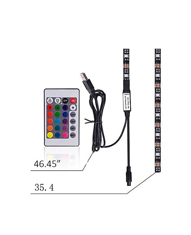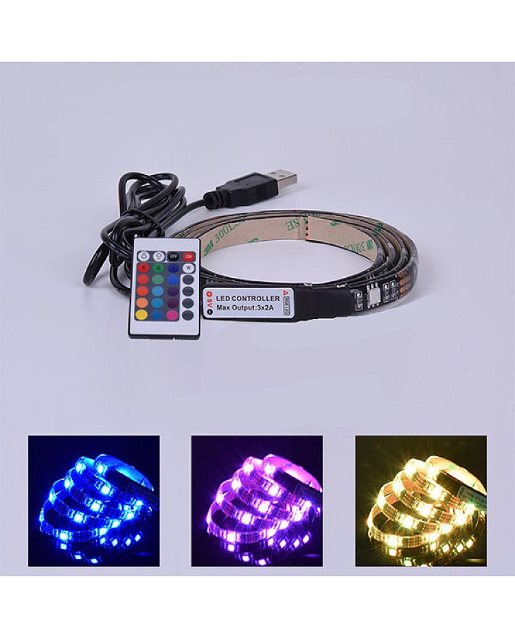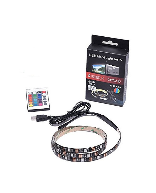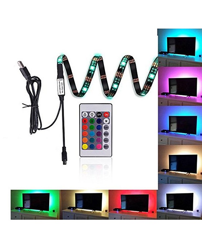 The TV LED backlight strips with USB port, working in DC5V, can connect to the USB port on your TV, the LED strips use high quality 5050 RGB LEDs as light source, each SMD LED includes the red, green and blue LED chips, working in DC5V, the length is 100cm, with surface coated epoxy and the waterproof level is IP65. Back with double-sided adhesive tape, easy install and use, if the length of the LED strips is not a good fit for your TV, the user can cut with scissors on the cut marks to fit the best size of your TV. The LED backlight strip kit includes an LED controller and 24 24-key remote; users can control the LED strip to power on/off, change the static colors or dynamic color-changing modes, and adjust the brightness of a single color. Can be used on your computer, desktop, laptop, TV, etc.