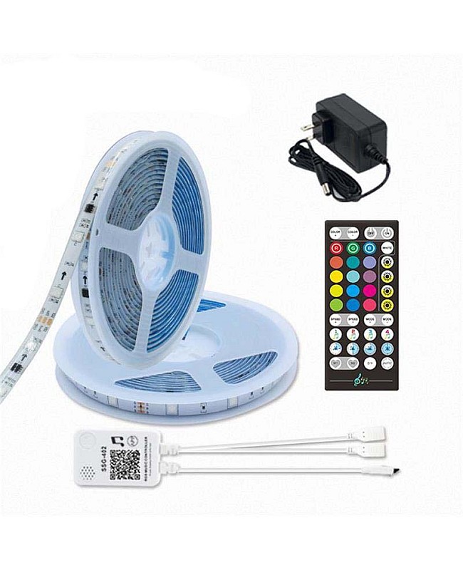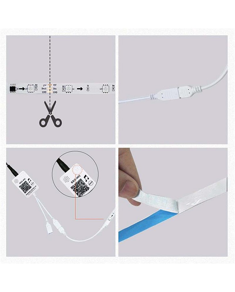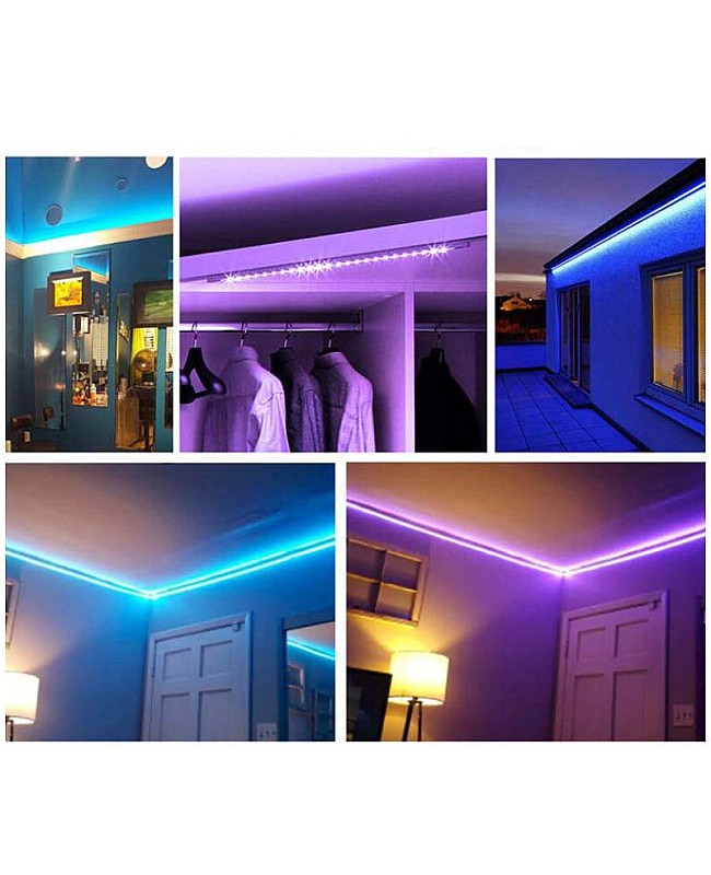 The dream color LED light strips use the high-quality 5050 RGB SMD LEDs as the light source, with 30 LEDs per meter. The RGB LEDs are mounted on a flexible, cuttable double-layer PCB board with an epoxy-coated surface. The waterproof level can reach IP65 and be used indoors or outdoors. The back with double side tape, easy to install and use. the LED controller with Bluetooth module included, you can connect the LED controller with your phone through Bluetooth, you can control the dream color LED Lights by the APP, it can display 16 million colors, the 40Keys remote included, you can use it to set the static color, adjust the brightness of single color and activate the music mode. Under the music mode, the dream color LED strips will change colors automatically, and 4 music modes are available. There are 5-meter versions and a 10-meter version available. There are 3 different power plug LED adapters available, and you can connect them to the AC110V or AC220V power system to light up the LEDs.