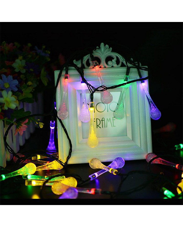 The drop-style solar string lights use high-quality LEDs as a light source and come with a solar panel and NI-NH rechargeable battery. The LED light can keep lighting for at least 8 hours after being fully charged during the day. This type of LED string light is waterproof, can be used indoors or outdoors, and is a good idea for garden light, Christmas, parties, or other scenes. Users can select different emitting colors, and the LED string lights have long-lasting and flashing working modes. Applications: roof, window, door, storefront, carport, signs, safety zones, workbenches, lobbies, walkway, deck, patios, boat docks, vehicles, cove lighting, kitchen counters.